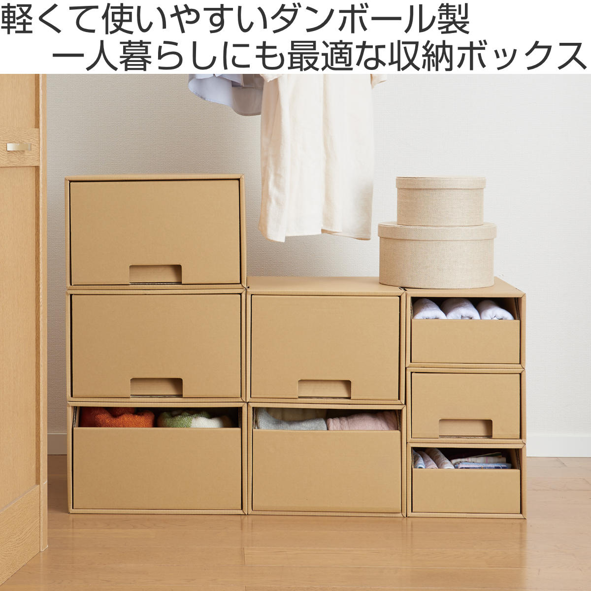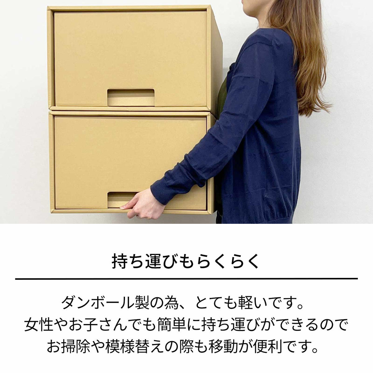 A4リングファイルや衣類などを収納するのに便利なダンボール製の収納ボックスです。軽くて持ち運びやすく組み立ても簡単なので、短期のイベントや出張、一人暮らしの方に最適です。