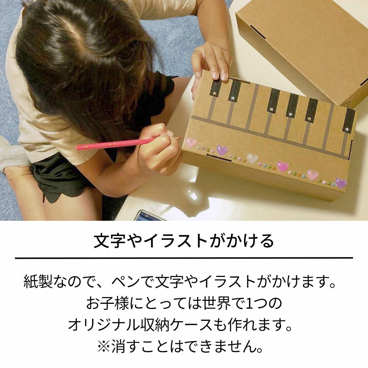 ダンボール製なので、ペンで文字やイラストがかけます。シールなどでデコレーションを施せば、お子様にとっては世界で1つのオリジナル収納ケースも作れます。