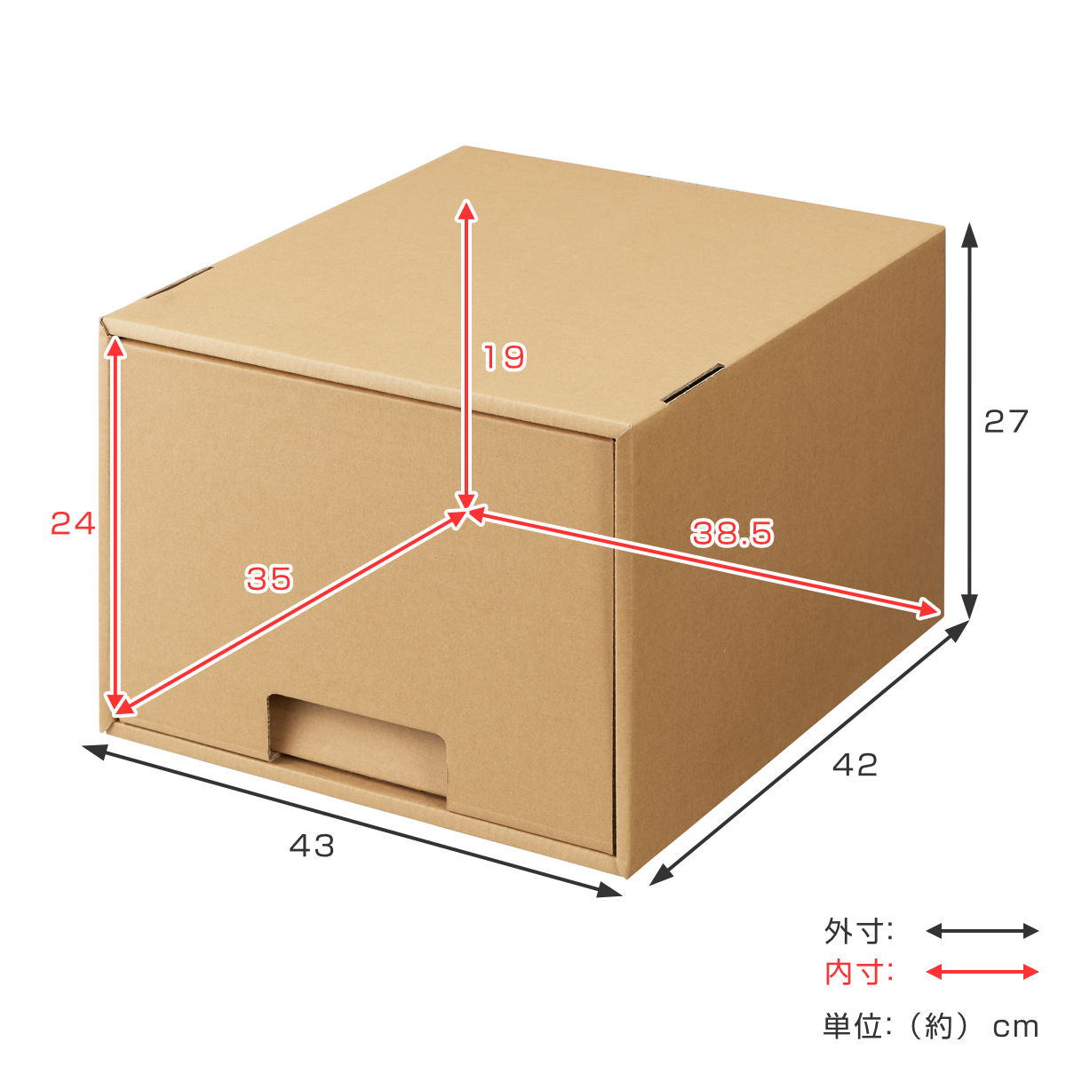 フィッツクラフト 引出式 多目的ケース ワイド 4個セット ( Fits 収納 ダンボール 幅43×奥行42×高さ27cm 収納ケース 収納ボックス 段ボール 軽量 引き出し 日本製 小物収納 小物入れ 取っ手付き 積み重ね 滑り止め 天馬 )
