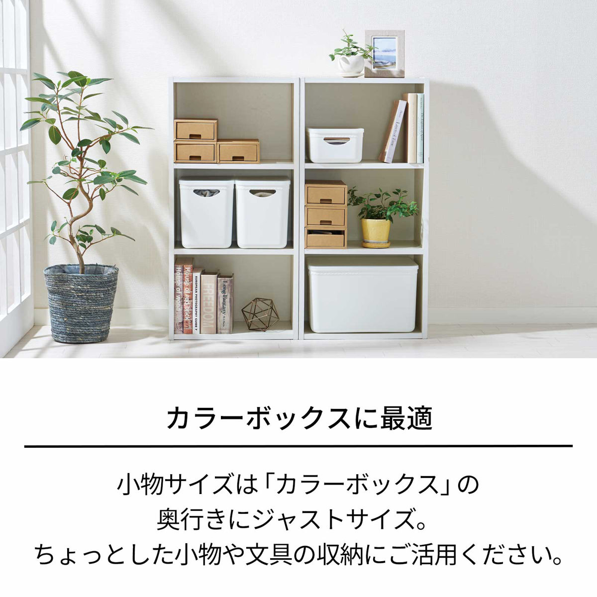 多目的(A4・ワイド)サイズを2段重ねた高さと、小物(A4)サイズを3段重ねた高さがぴったり合います。同シリーズで組み合わせてのご使用もオススメです。