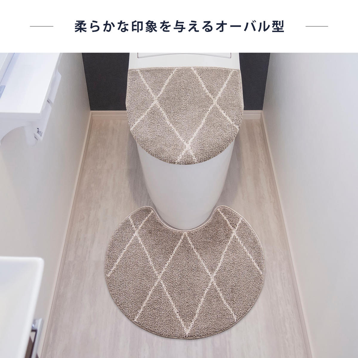 トイレマット ファミーユ ルタン オーバル 55×60cm ( トイレ マット 洗える 洗濯可 滑り止め 足元マット トイレタリー すべり止め すべりどめ 洗濯OK シンプル ) 【アイボリー】
