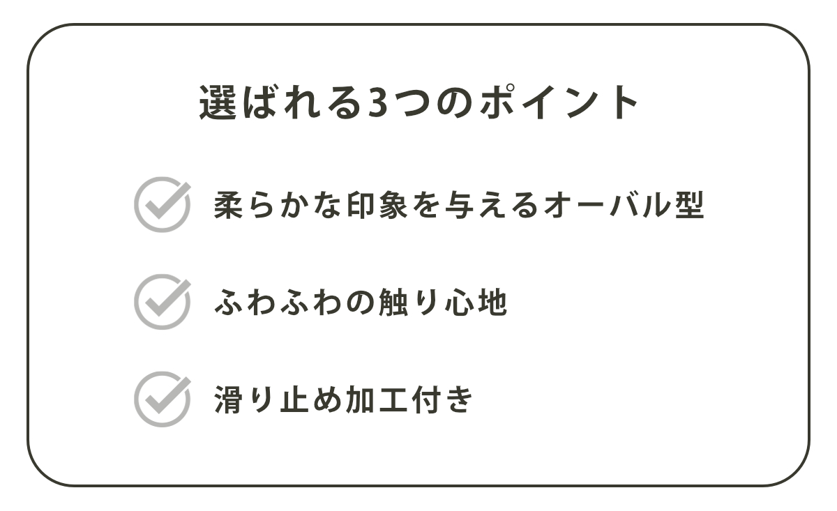 木目調のインテリアや空間と相性の良い、シンプルでナチュラルなデザインのトイレマットです。柔らかな印象を与えるオーバルタイプです。