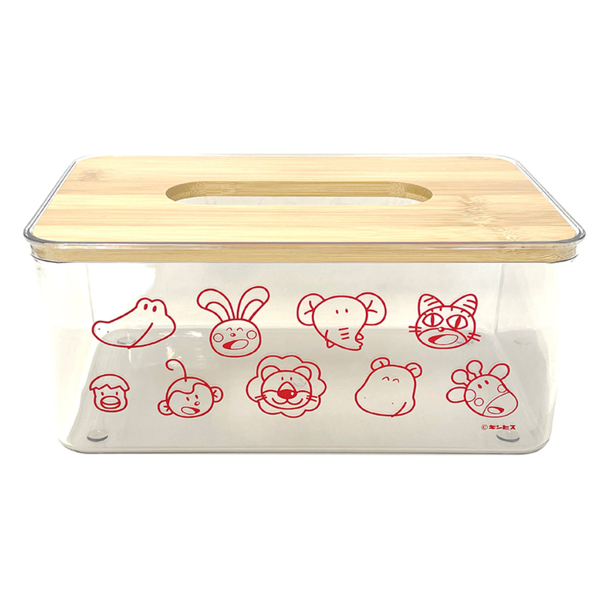 大人気のビスケット菓子「たべっ子どうぶつ」でお馴染みの動物たちが大集合したティッシュケースです。本体はクリア素材で、ティッシュの残量が一目で分かり実用的です。竹製の蓋を開けて、ソフトパックや箱ティッシュの中身だけを詰め替えるので、シンプルな見た目になり、幅広いインテリアにマッチします。