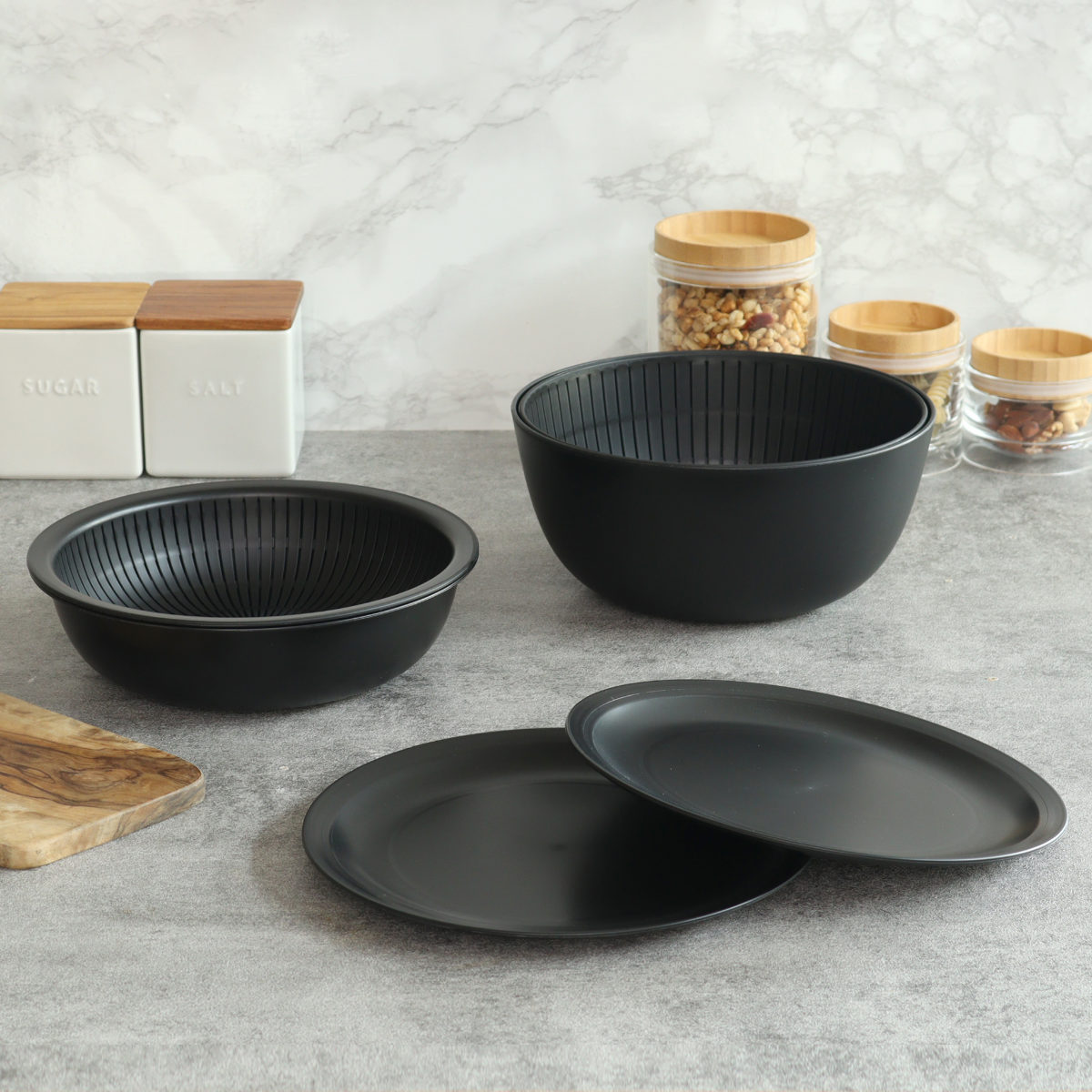 米研ぎボウル ザル 浅型 ライクイット 電子レンジ対応 食洗機対応 日本製 米とぎにも使えるザルとボウル LBK-02 ( like-it 米研ぎザル 米とぎ セット 米研ぎ用ボウル 米研ぎボール 水切りザル 水切りボウル ) 【ブラック】