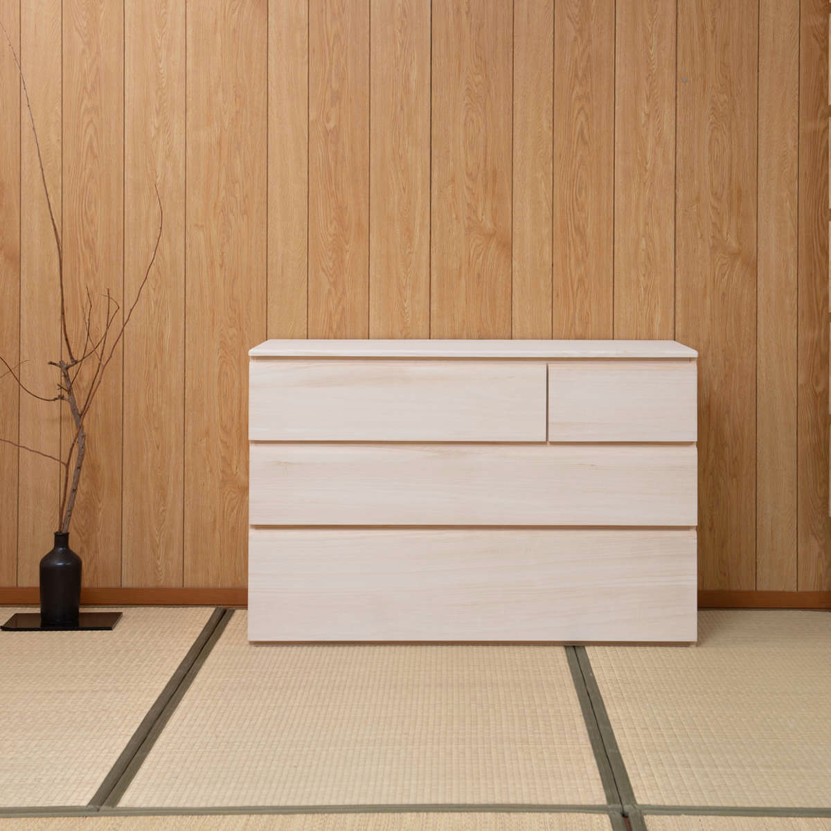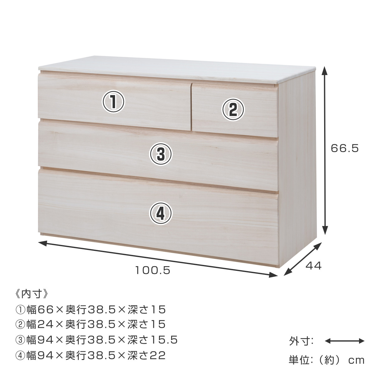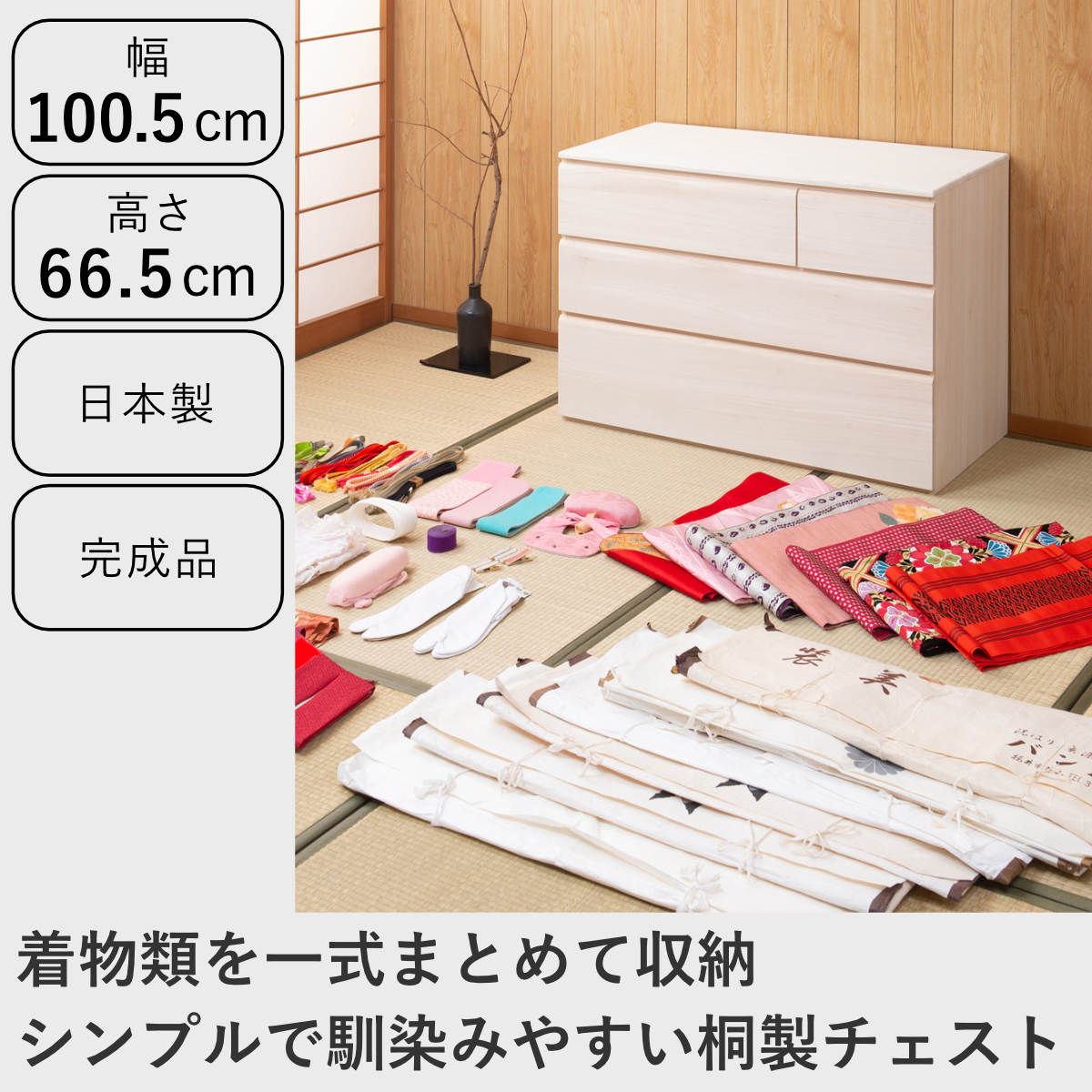 桐洋風チェスト 幅100.5cm 3段4杯 生地仕上げ 日本製 完成品 ( 桐たんす 桐 チェスト 洋風 箪笥 桐箪笥 たんす 桐タンス 衣類収納 和だんす 桐製 )