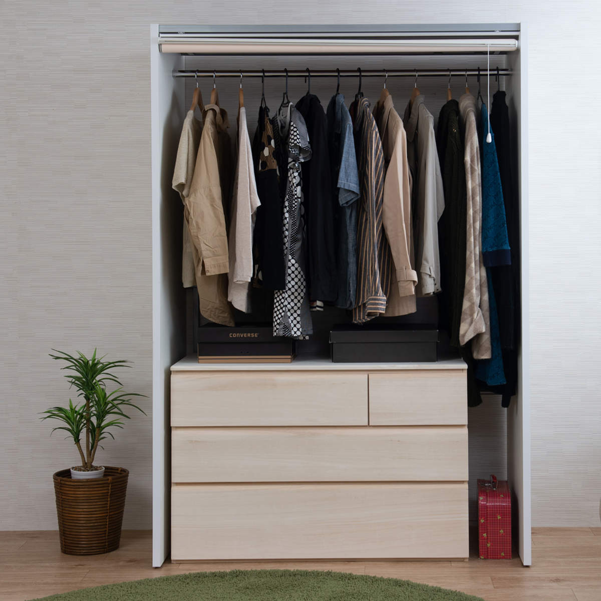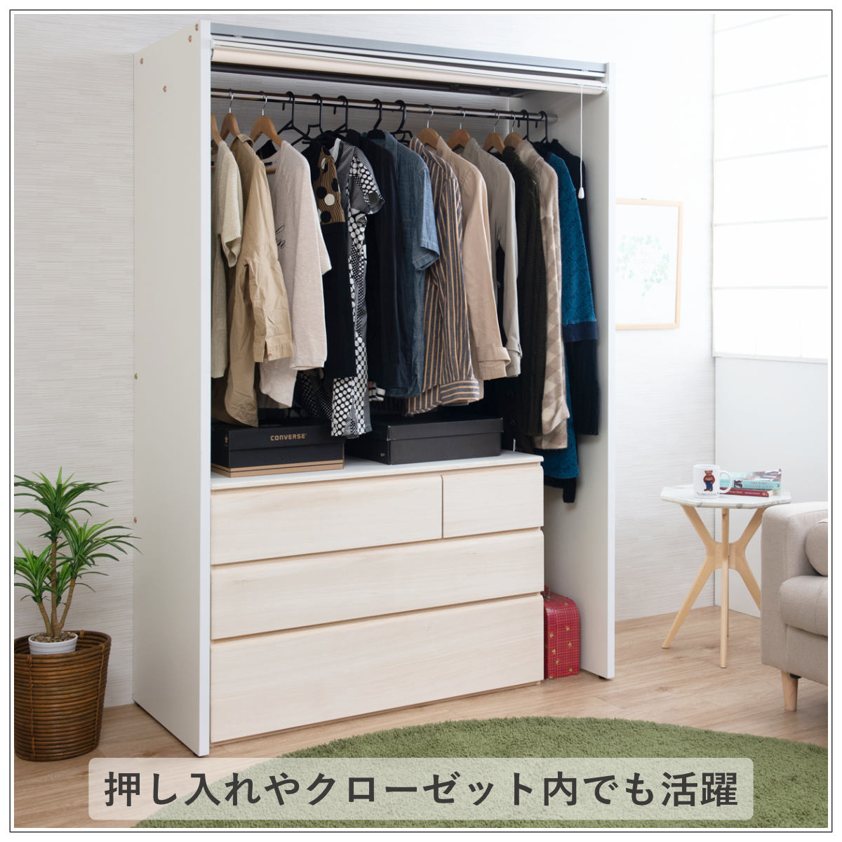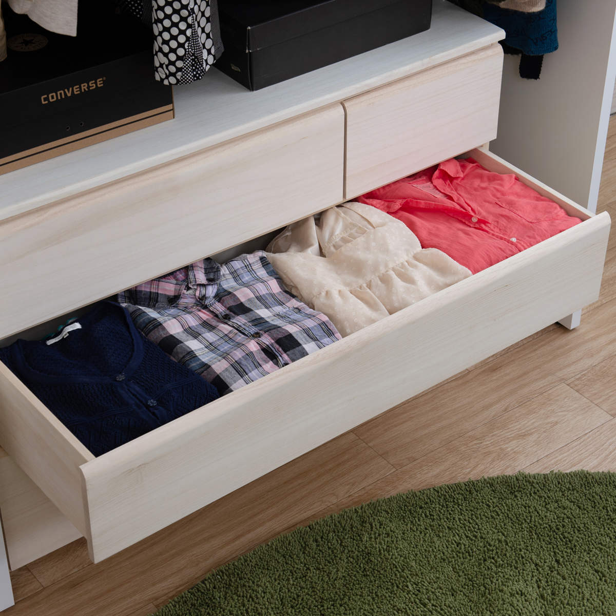 最下段の引出しの真ん中には、取り外し可能な仕切り付きです。洋服類の収納の際におすすめです。