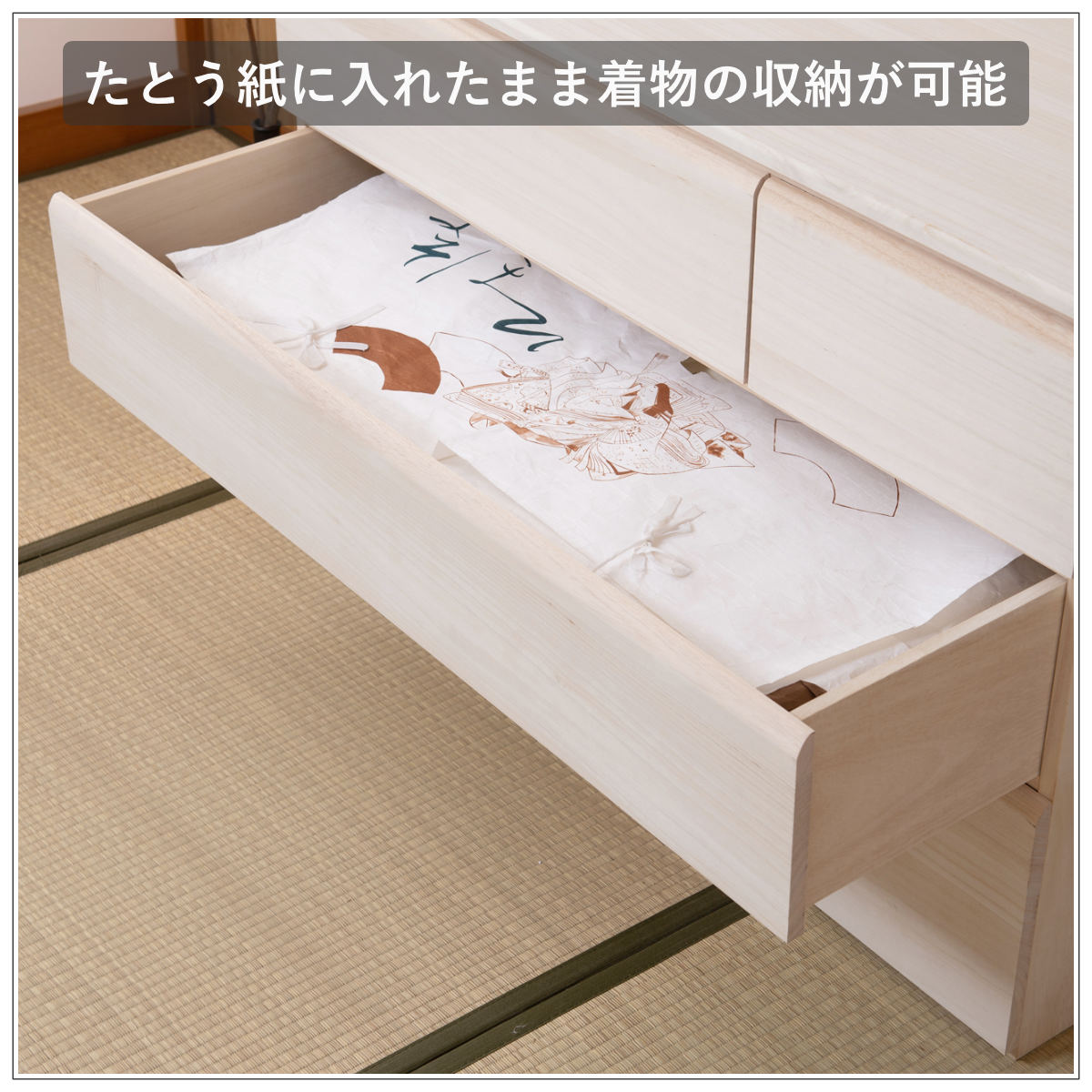 引出しは二つ折りの着物をたとう紙にいれたまま収納できるサイズです。