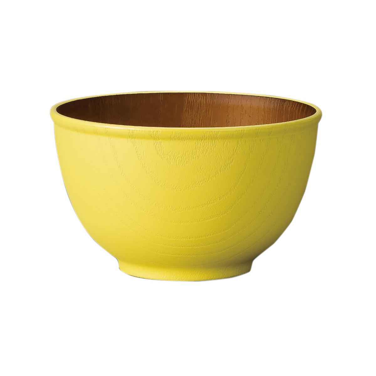 ボウル 12.5cm M 木目調 isso ecco 同色5個セット ( 食洗機対応 電子レンジ対応 スープボウル サラダボウル お椀 日本製 クリーンコート加工 防汚性 撥水性 軽い 割れにくい 味噌汁 子ども アウトドア 持ち運び おしゃれ ) 【イエロー】