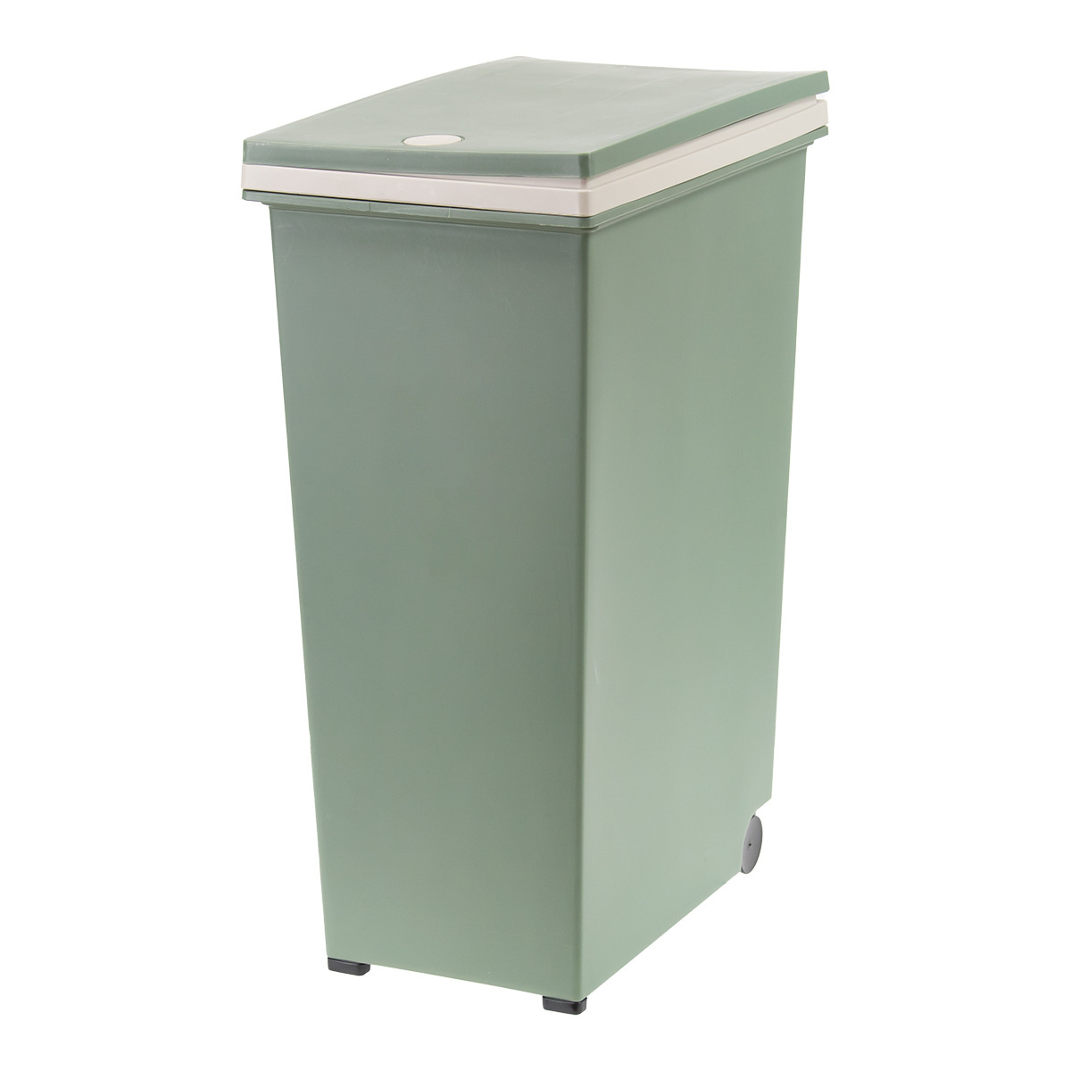 ゴミ箱 30L プッシュ式 ダストボックス アルフ ( ごみ箱 30リットル 幅23 ワンタッチオープン ふた付き 分別 2分別 角型 キッチン シンプル プッシュ 押し蓋 タッチオープン 袋止め付 袋 見えない おしゃれ ) 【カーキ】