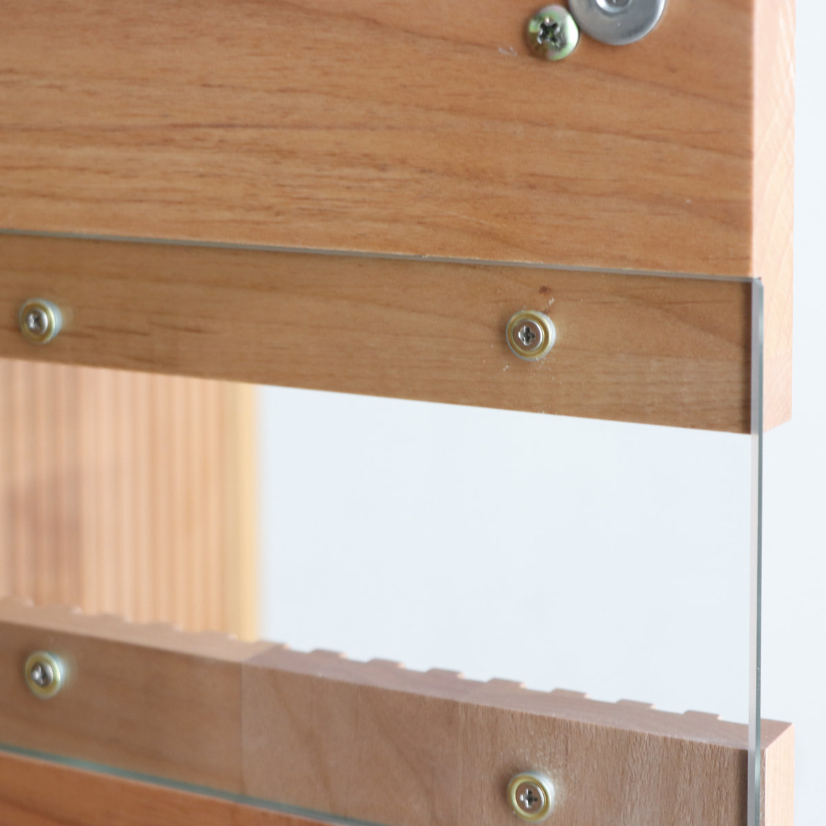 | 材質 | 天板:強化紙化粧板 本体:プリント化粧板 前板:アルダー無垢(ウレタン塗装) 脚部:スチール脚(粉体塗装) ガラス:強化4mm透明ガラス |