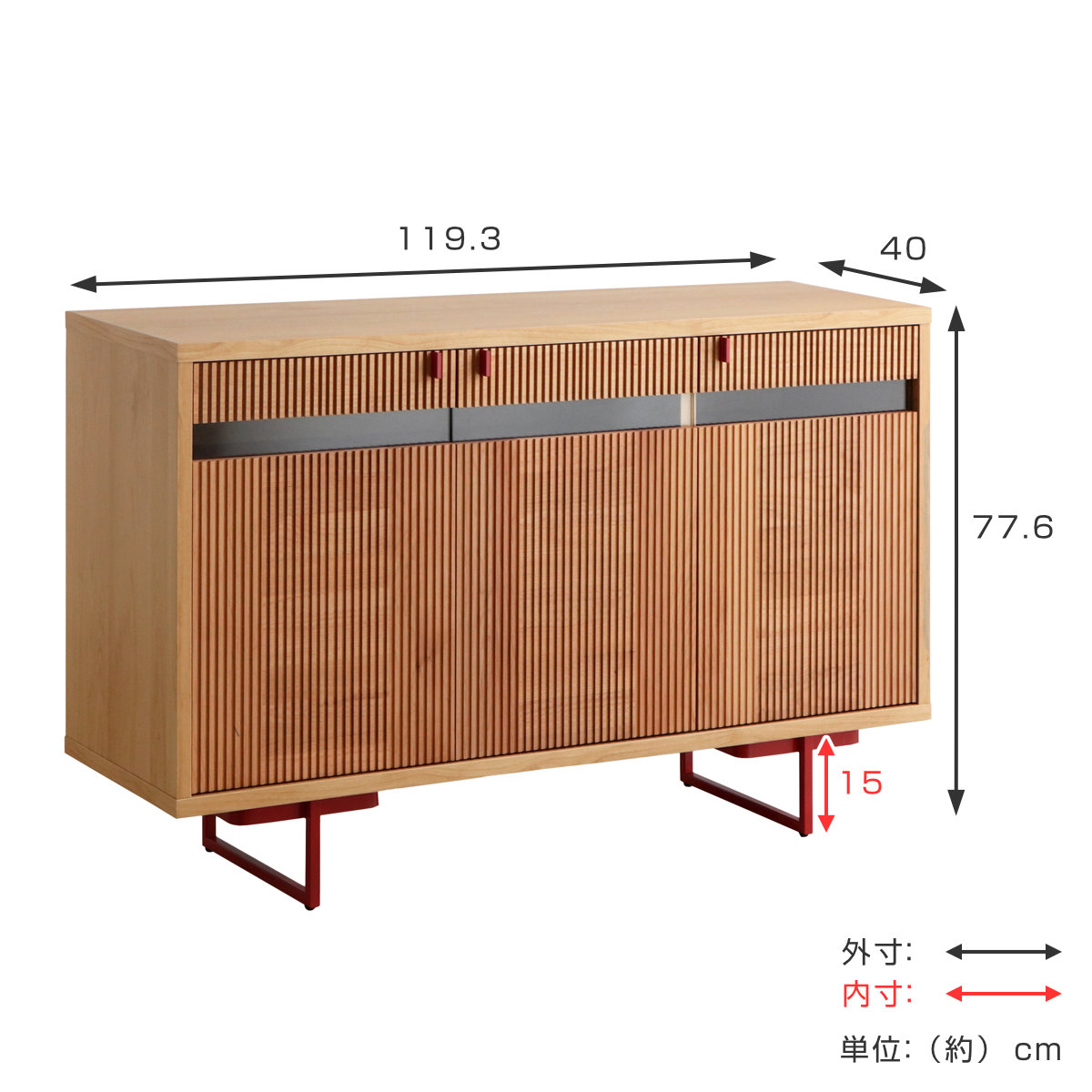 | サイズ | 約 幅119.3×奥行40×高さ77.6(cm) |
