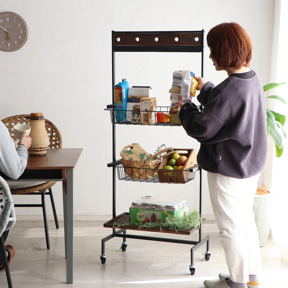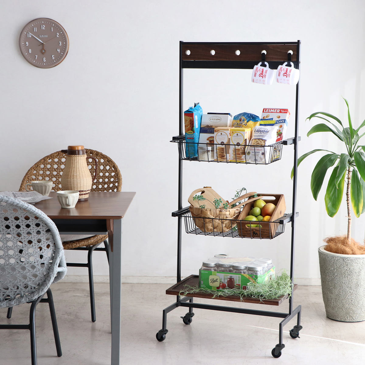 散らかりがちなキッチンやダイニング周りでの使用もおすすめです。使いやすいサイズ感とシンプルなデザインなので、お部屋のインテリアにも馴染みやすく、省スペースで整理整頓することができます。