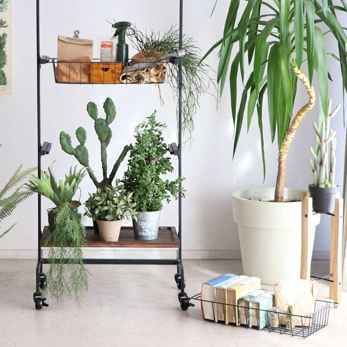 2段のバスケットは取り外すことができるので、背の高いサボテンや観葉植物も置くことができます。