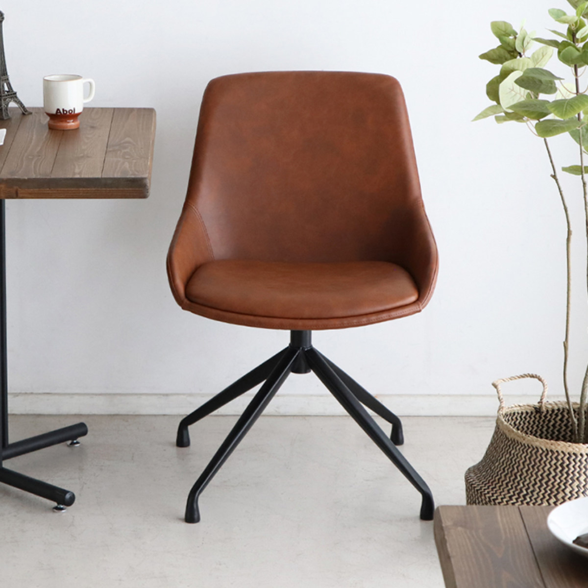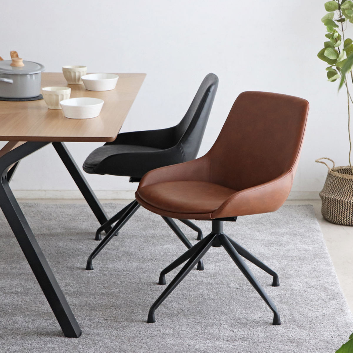 チェア 座面高43cm 回転 レザー調 エデル ( 椅子 いす ダイニングチェア デスクチェア リビング ラウンドチェア おしゃれ ヴィンテージ調 北欧風 PUレザー キャメル ブラック ) 【キャメル】