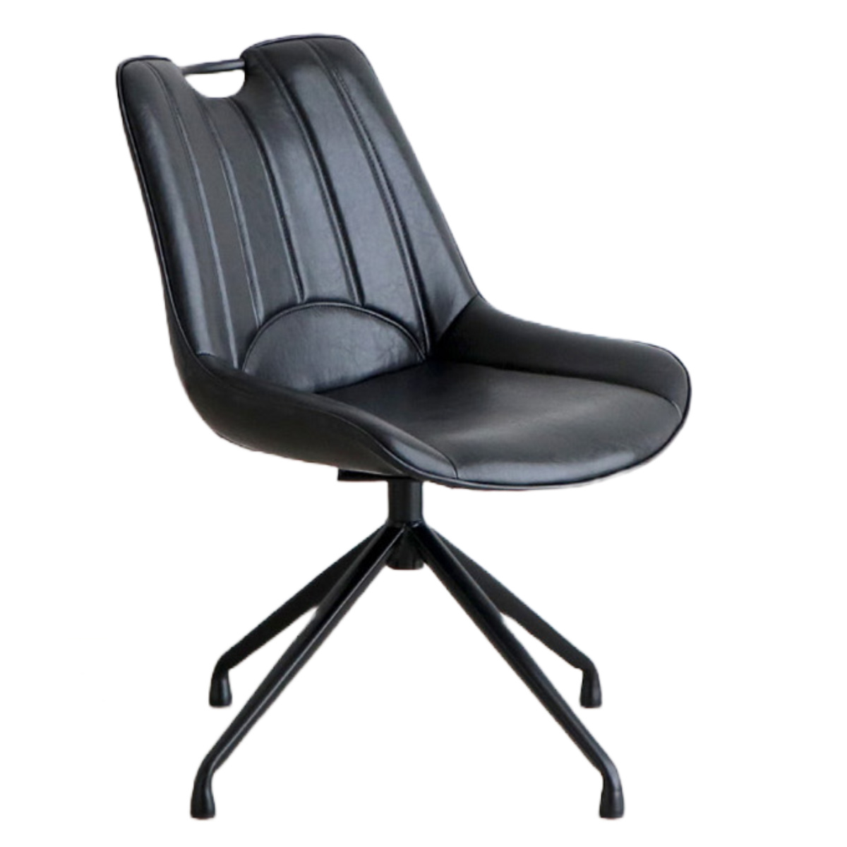 チェア 座面高42cm 回転 レザー調 カーナ ( 椅子 いす ダイニングチェア デスクチェア リビング ラウンドチェア おしゃれ ヴィンテージ調 北欧風 PUレザー 白 ホワイト ブラック ) 【ブラック】