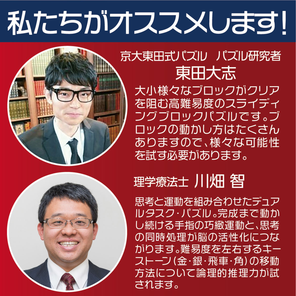 ●子どもの知育遊びから、大人の頭の体操、シニアの脳活まで幅広く対応するパズルです。