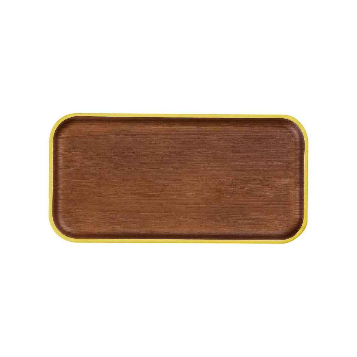 トレー 長角 24cm 木目調 isso ecco 同色5枚セット ( トレイ カフェトレー お盆 スクエア 長方形 軽い 割れにくい アウトドア 持ち運び 子ども お年寄り おしゃれ ティータイム ) 【イエロー】
