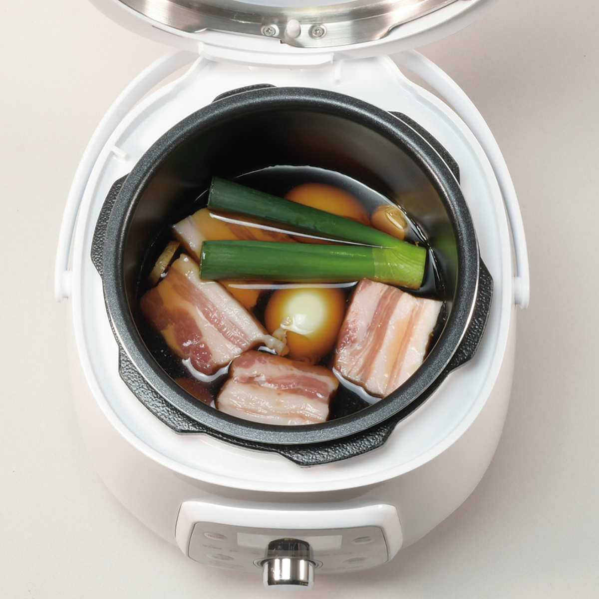 ●材料を入れてボタンを押すだけで、本格的な料理ができあがる電気圧力鍋です。
