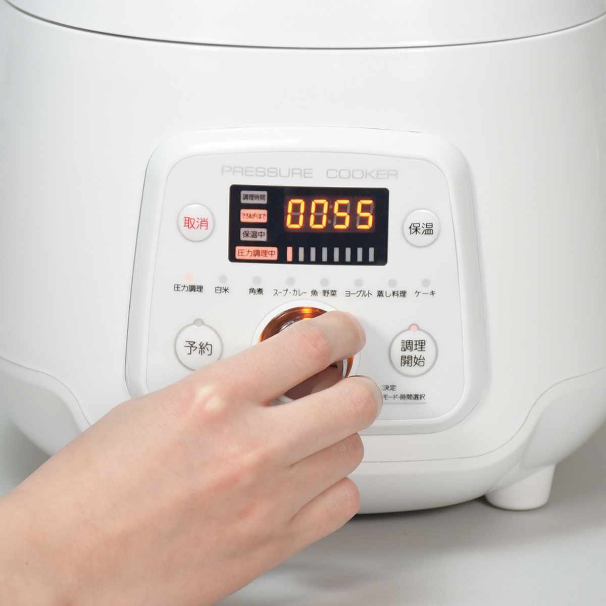 一般的な電気圧力鍋よりも比較的コンパクトなサイズです。ダイヤル式なので、何度もボタンを押す必要がなく、簡単にコースや時間などを設定できます。