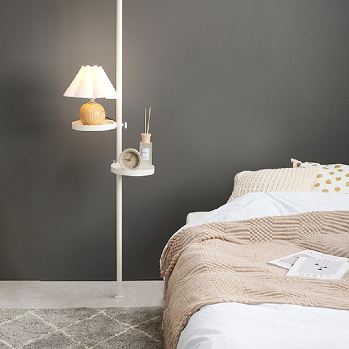 突っ張りポールラック 丸型トレイ5個 高さ調整 見せる収納 ( 突っ張りラック 突っ張り棒 ラック ハンガー ポール スリム 収納 突っ張り 隙間 つっぱり棚 スリムラック 収納ラック トレー 5段 観葉植物 リバーシブル 両面 ) 【ナチュラルホワイト×ホワイト】