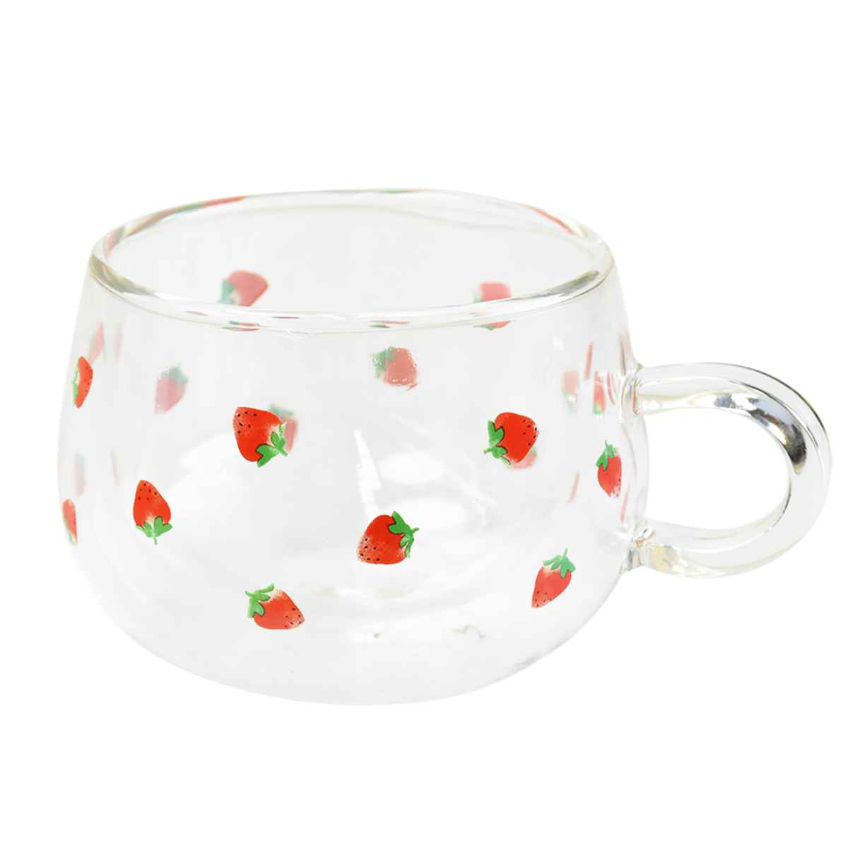 ダブルウォールグラス 250ml FRESH FRUITS 耐熱ガラス ( 電子レンジ対応 マグカップ ダブルウォール マグ ガラス製 耐熱 コーヒー 紅茶 ハーブティー ティータイム いちご リンゴ ボックス入り おしゃれ 二重構造 ) 【ストロベリー】