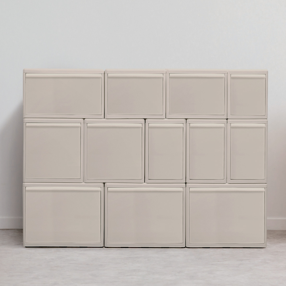 3種類の幅の異なる収納ケースでも積み重ねができるスタッキング構造で、自由にカスタマイズができます。無駄な空間を作らないブロック式構造なので、スッキリとした見た目です。MOSの収納ケースなら、スペースを有効活用したあなただけの「理想の収納」が作れます。