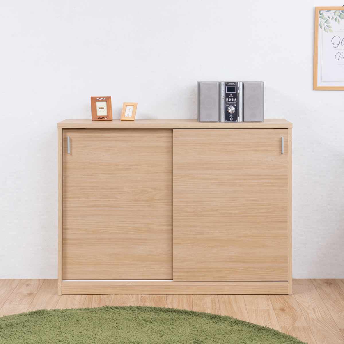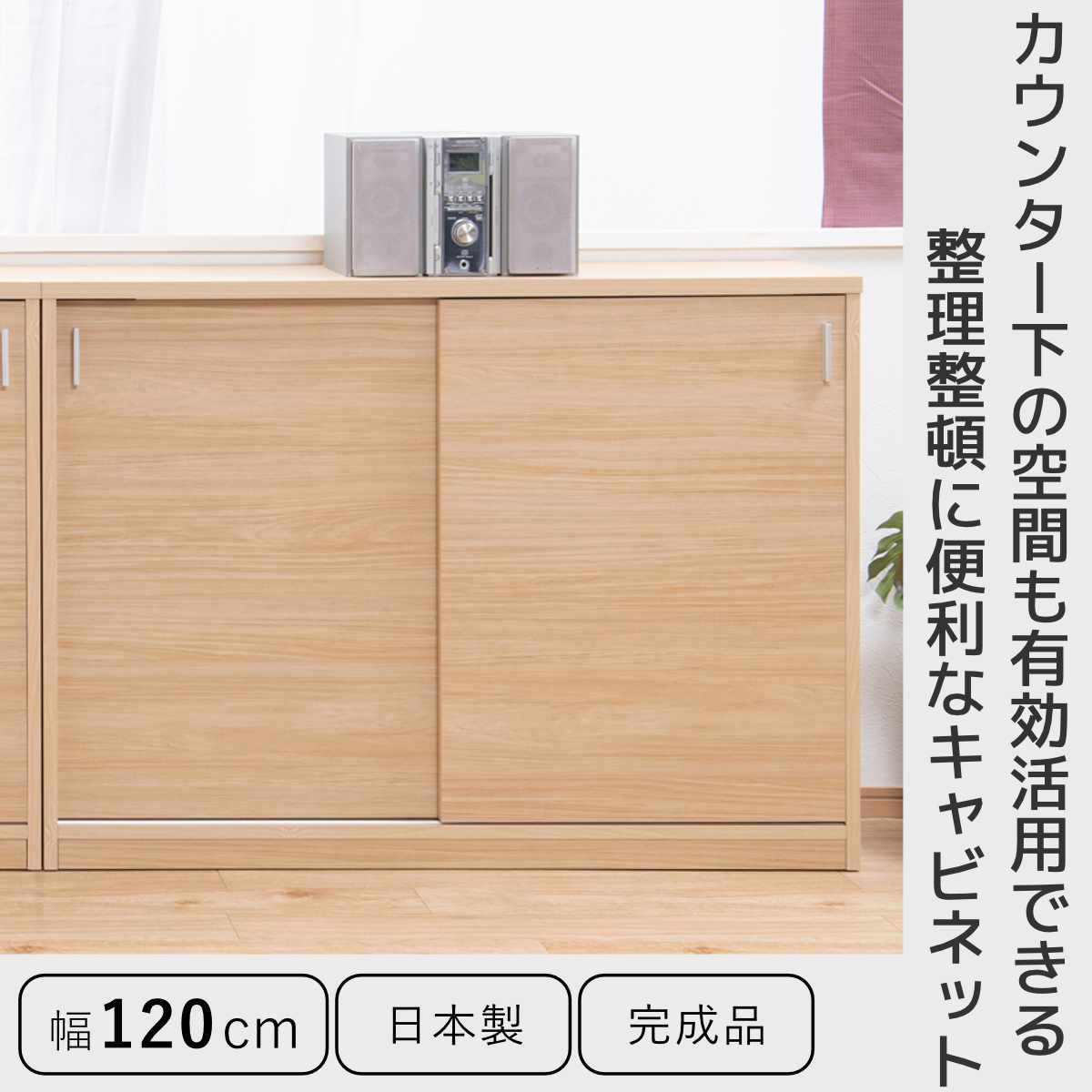 カウンター下収納 幅120cm 引戸タイプ 日本製 完成品 ( カウンター下 リビング 収納 キッチン収納 収納棚 モダンナチュラル 食器棚 キャビネット 薄型 可動棚 ホワイトウォッシュ ナチュラル おしゃれ ) 【ホワイトウォッシュ】