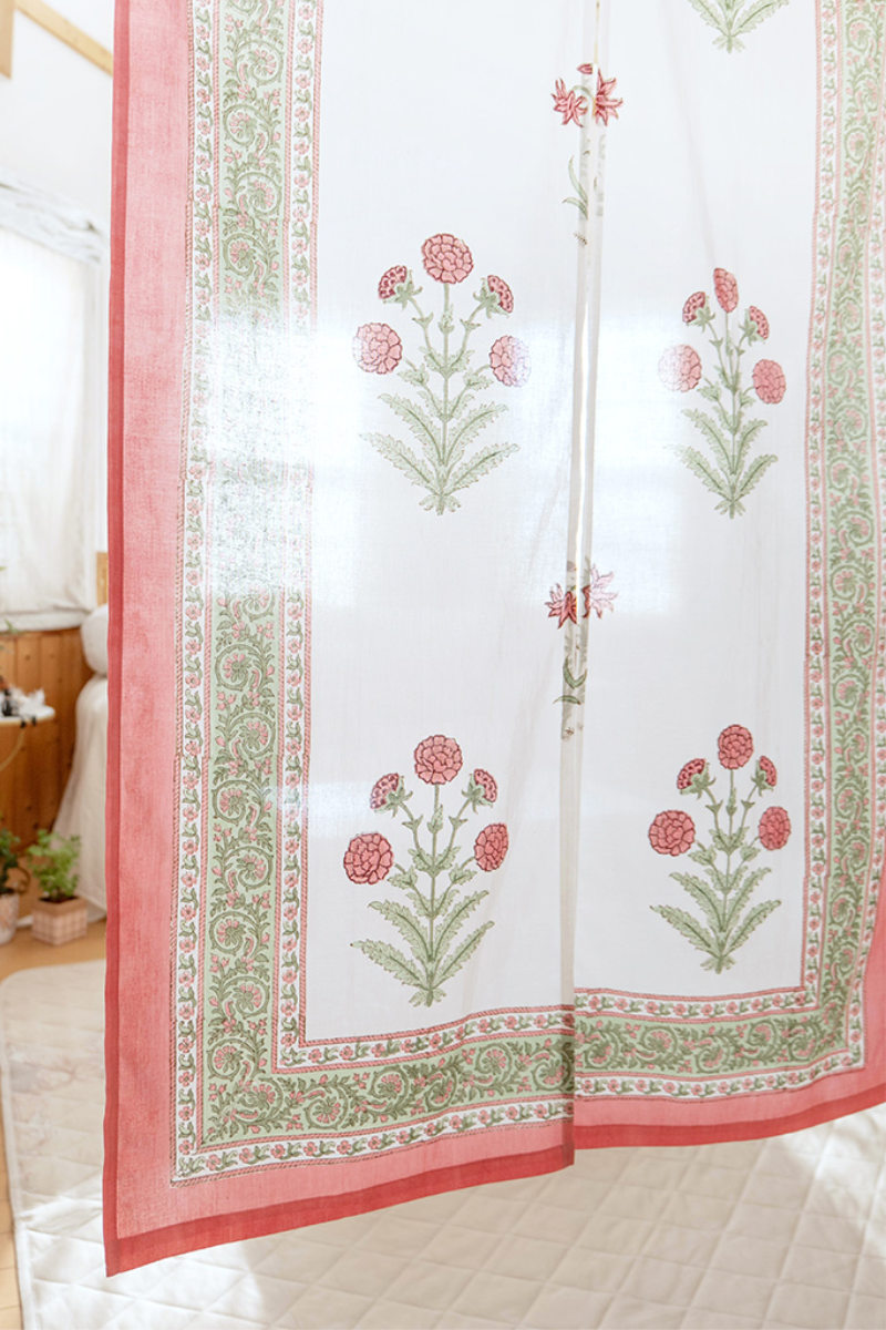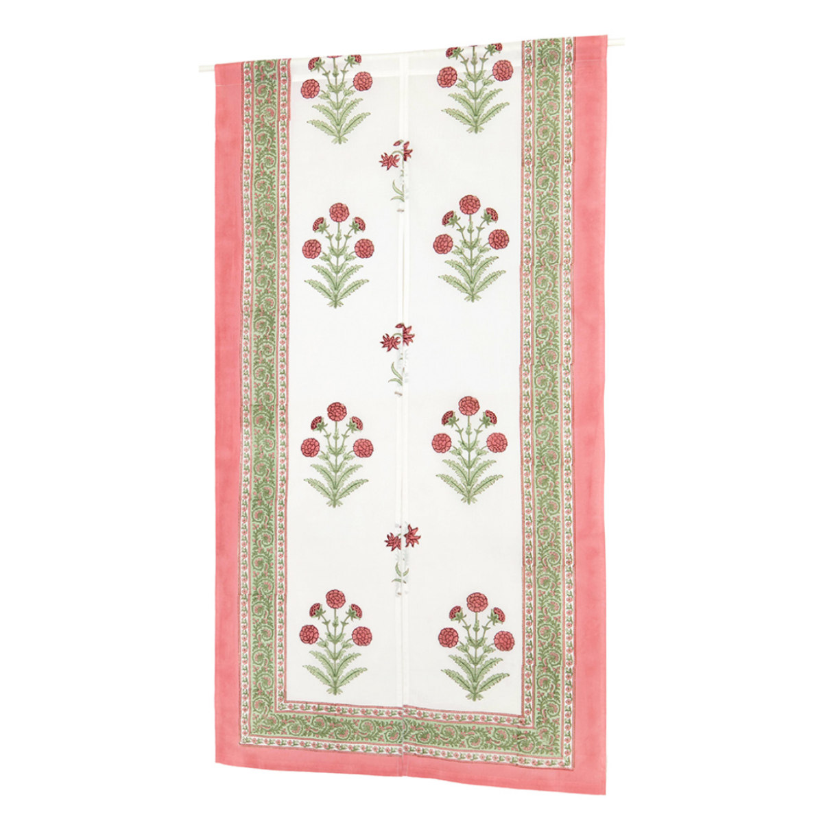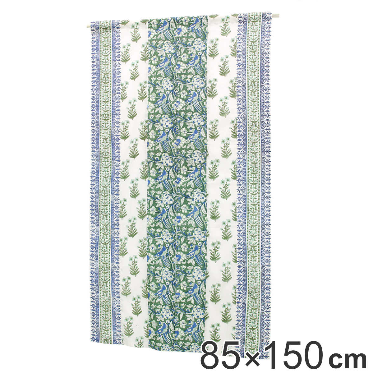 のれん ブロックプリント 約85×150cm ( 暖簾 ロング 仕切 目隠し 間仕切り ルームカーテン タペストリー スクリーン 花 柄 布 ファブリック 模様 透ける 薄い ウォッシャブル 綿 コットン インテリア )