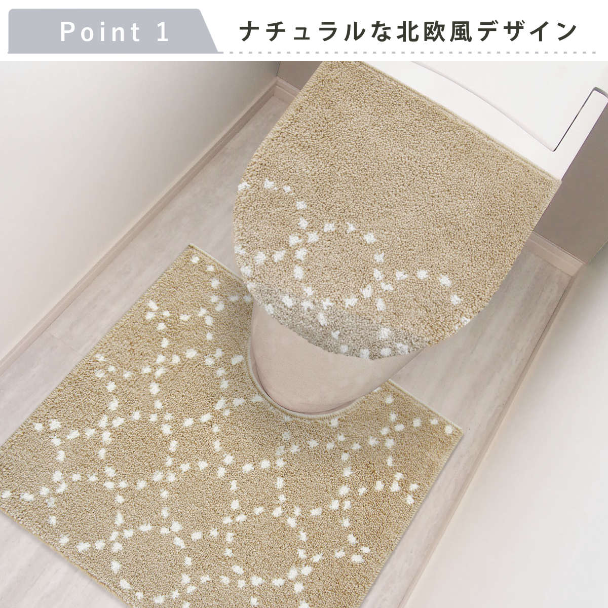 U型・O型・洗浄暖房型のどのタイプにも対応しているフタカバーです。柔らかな色味のシンプルな北欧風のパターン柄でオシャレなトイレ空間になります。
