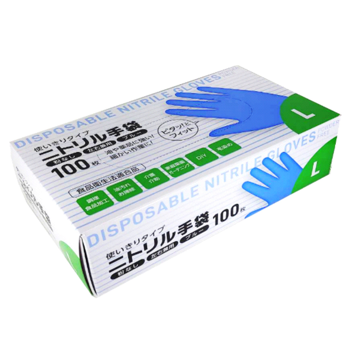 手袋 ニトリル手袋 100枚 L 掃除 ( 使い捨て手袋 てぶくろ 使い切り 使い捨て 粉なし 左右両用 左右兼用 ブルー 食品衛生法適合品 調理 食品加工 盛り付け ガーデニング 介護 DIY 毛染め )