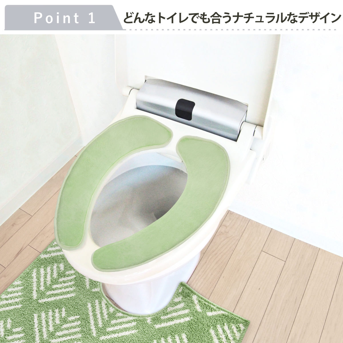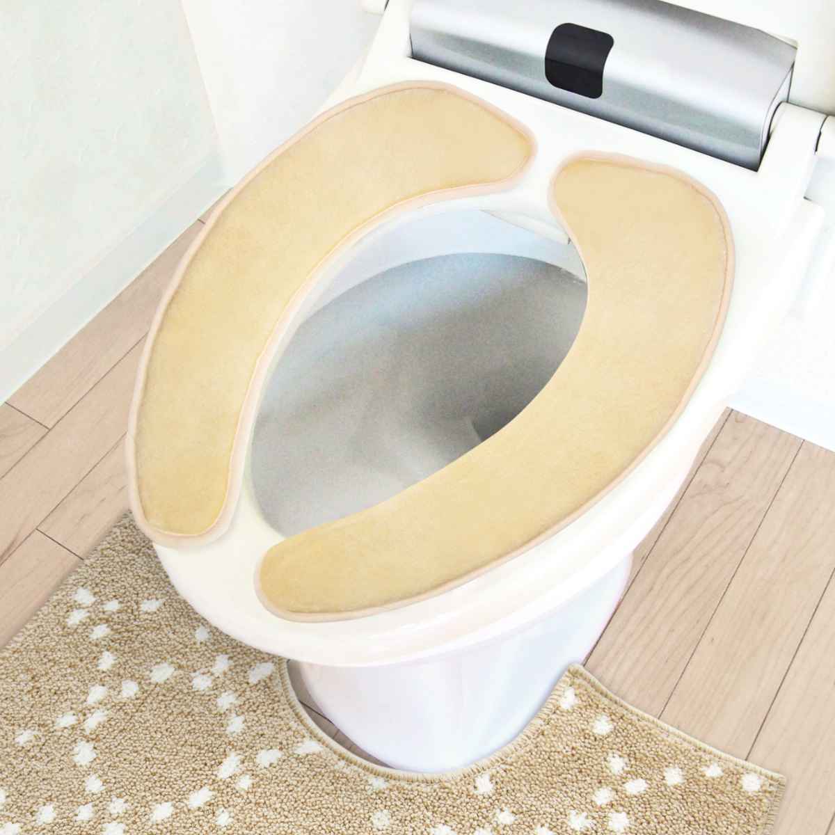 便座に貼るだけで使える吸着タイプの便座シートです。粘着ではなく繰り返し貼れるタイプなので、洗濯して何度もお使いいただけます。シンプルでナチュラルな無地デザインなので、どんなトイレにも合わせやすいです。