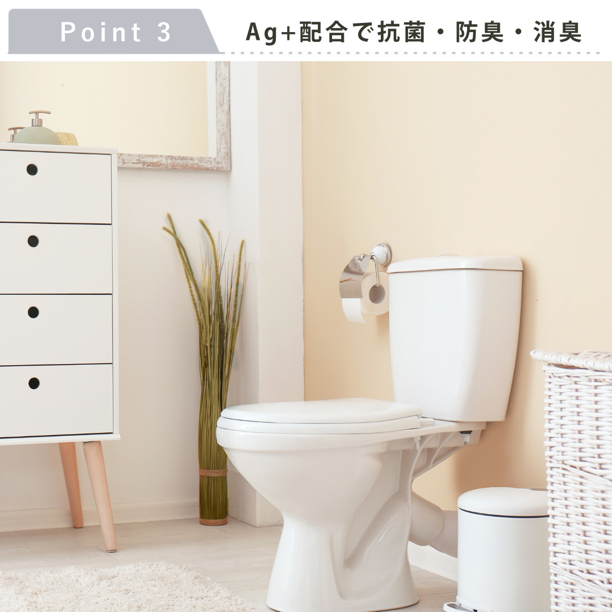 Ag+(銀イオン)による 抗菌・防臭・消臭機能があり、衛生的にお使いいただけます。