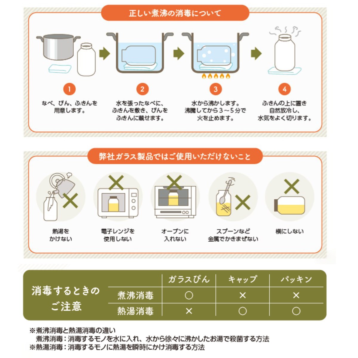 本体(ガラス部分)は、高濃度アルコールでしっかり除菌できるので、衛生面でも安心です。食品を直接入れるものだからこそ、いつでも清潔に使えるのはうれしいポイントです。
