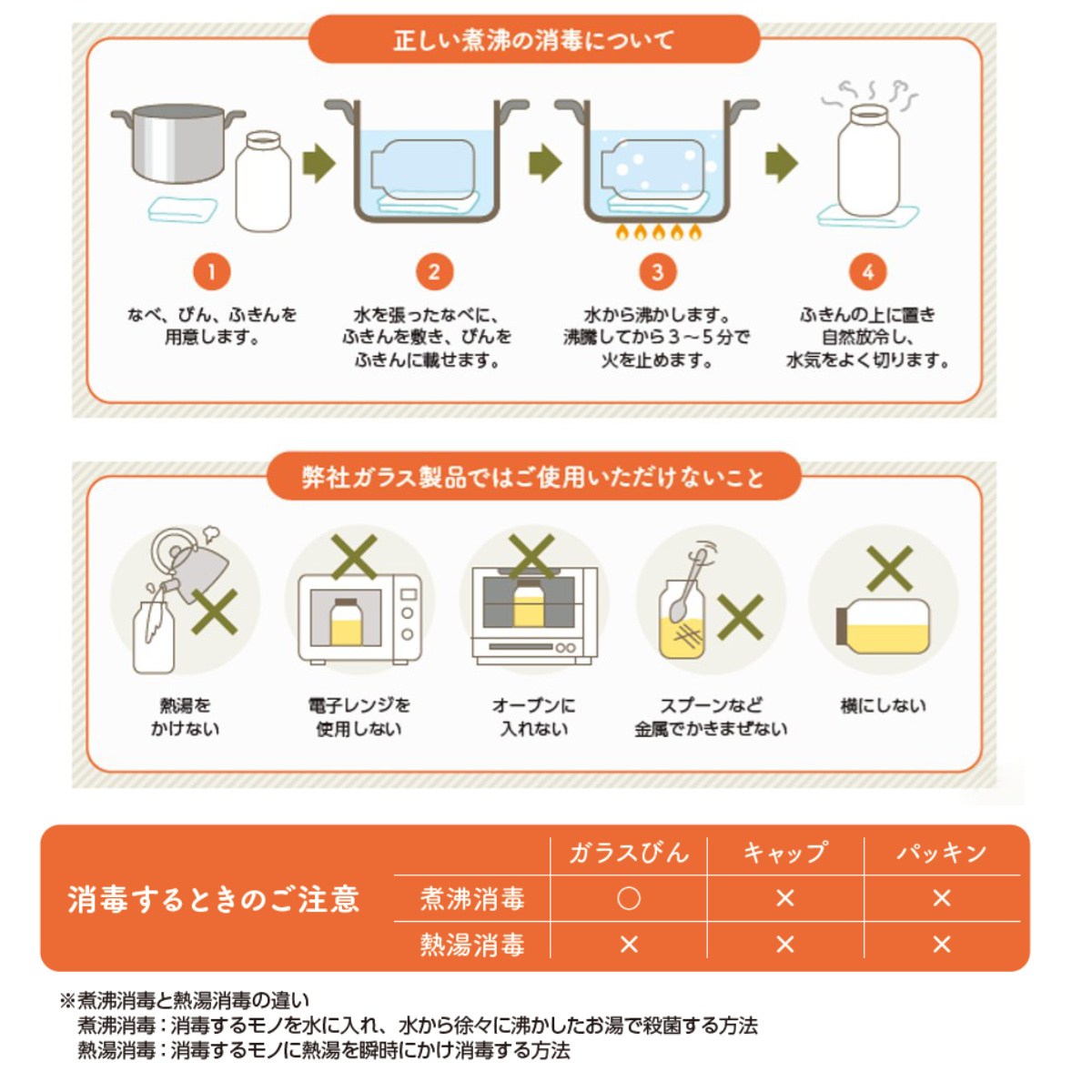 本体(ガラス部分)は、高濃度アルコールでしっかり除菌できるので、衛生面でも安心です。食品を直接入れるものだからこそ、いつでも清潔に使えるのはうれしいポイントです。