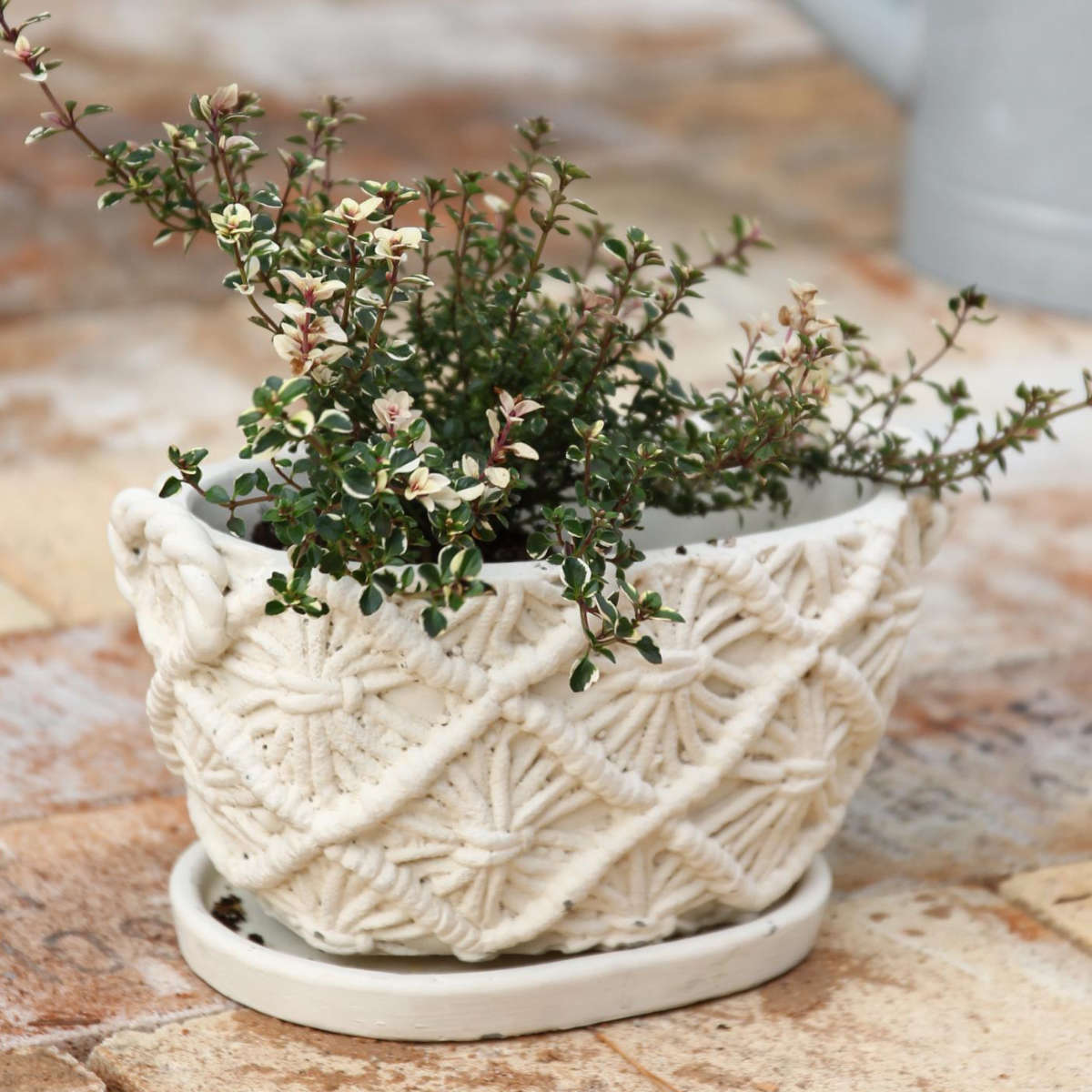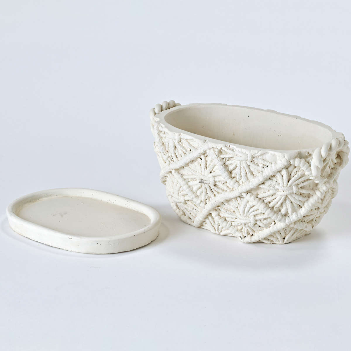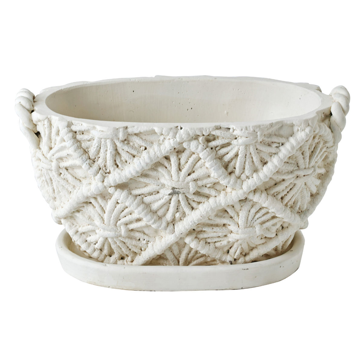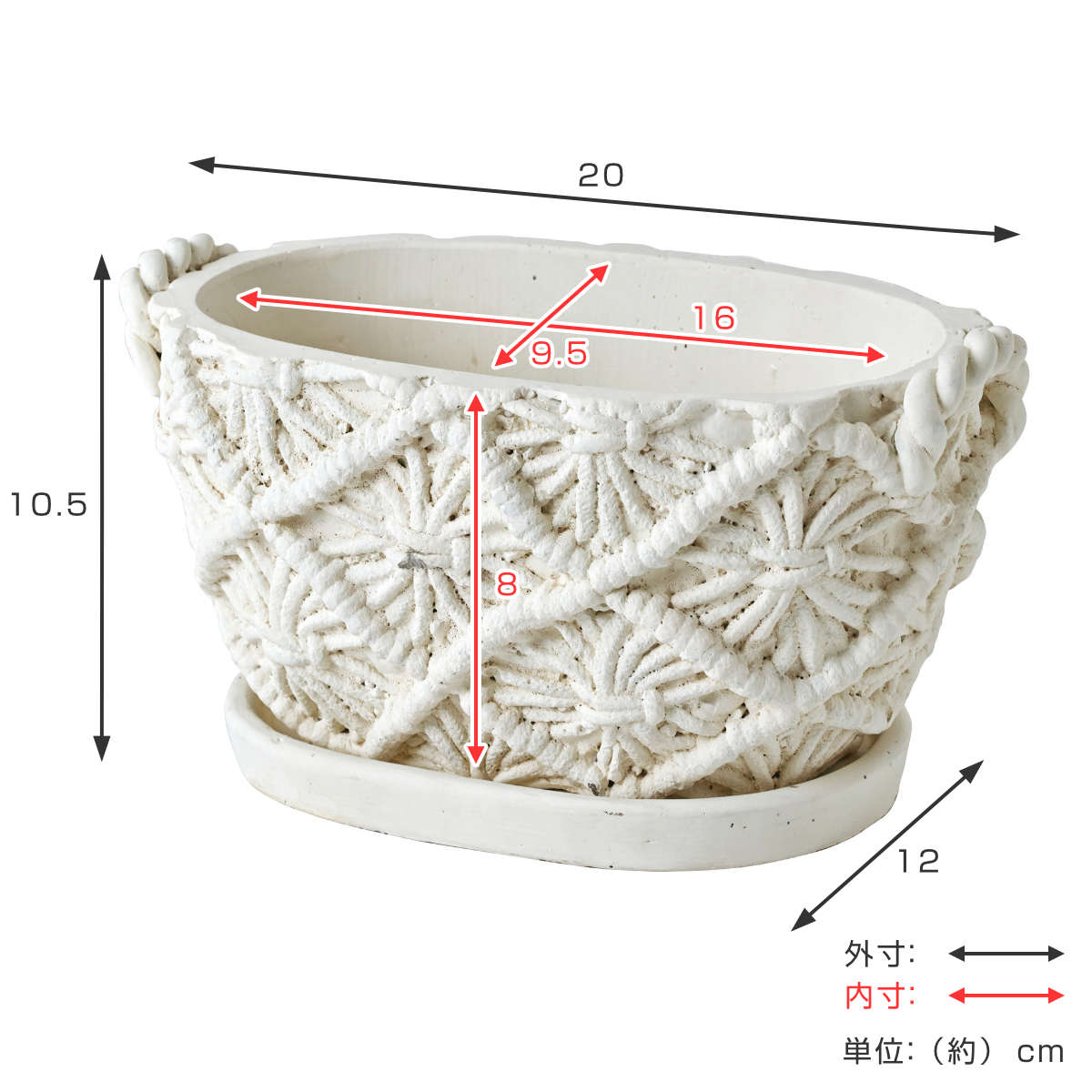 植木鉢 マクラメプランター オーバル セメント ( プランター プラントポット 植物用ポット 花器 鉢カバー ポット マクラメ だ円 マクラメポット セメントポット 置く 植物 花 観葉植物 多肉植物 サボテン 園芸 直植え 受皿 )