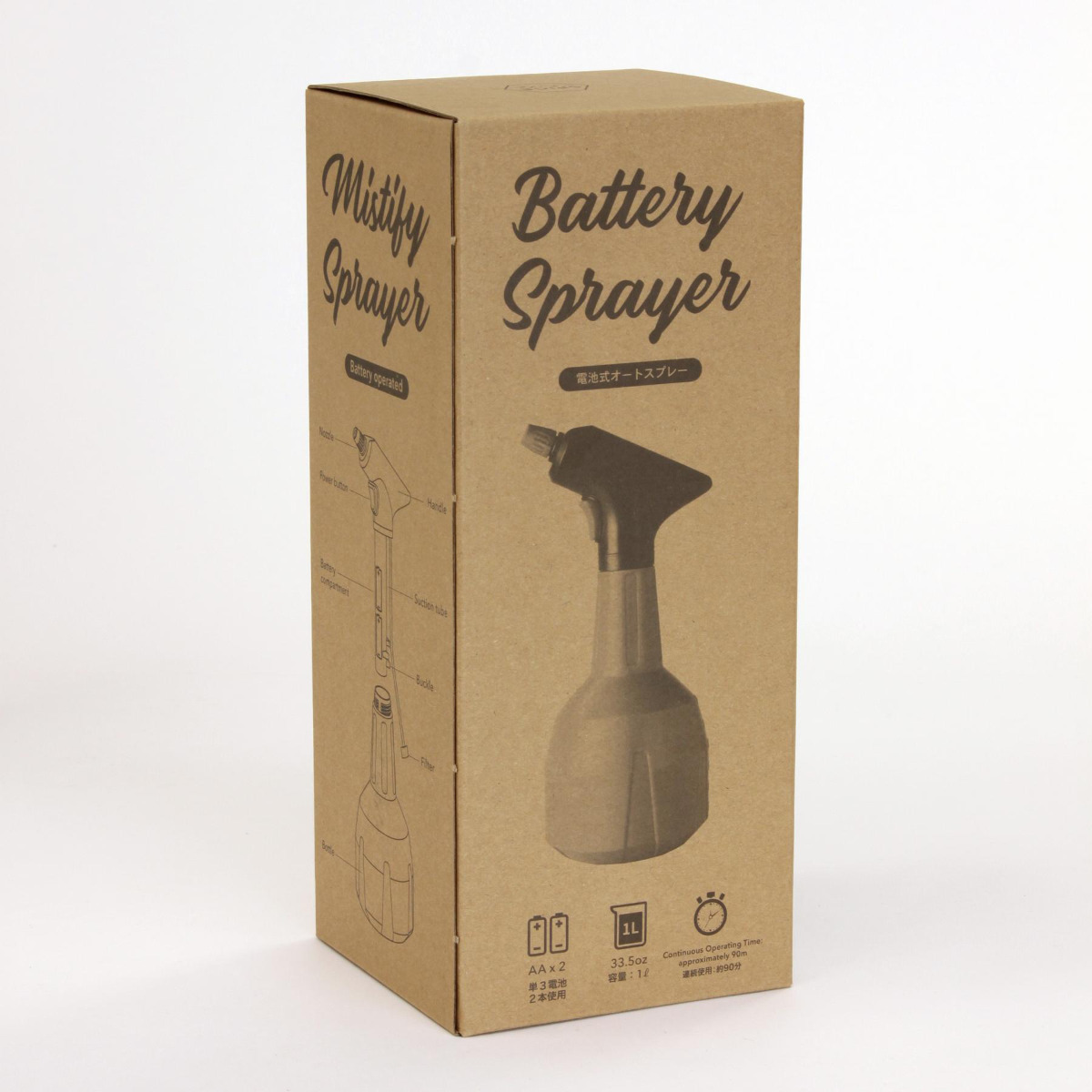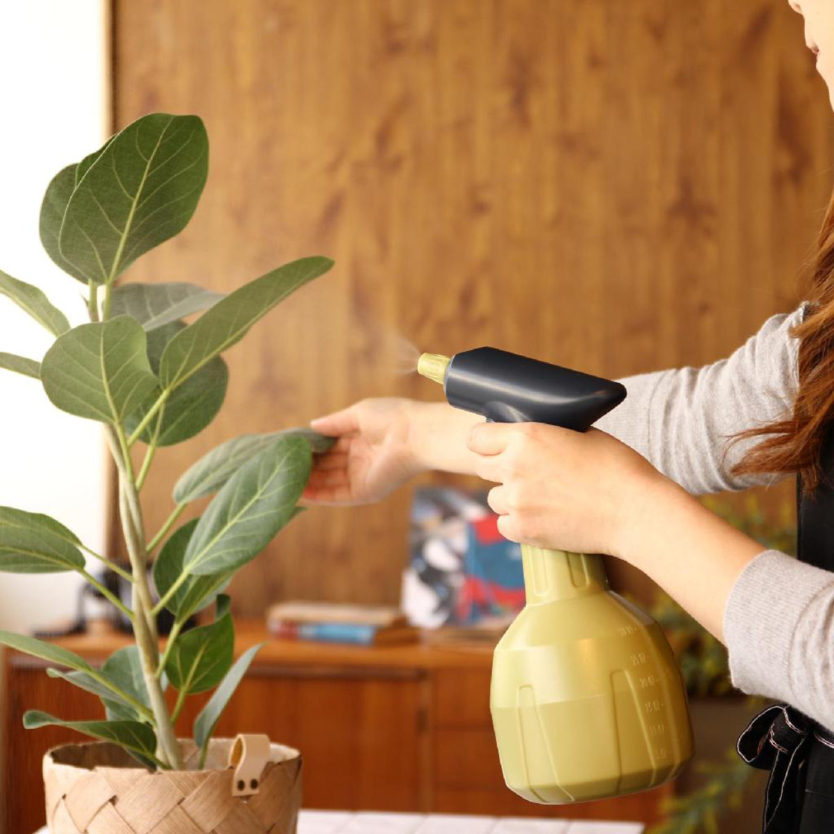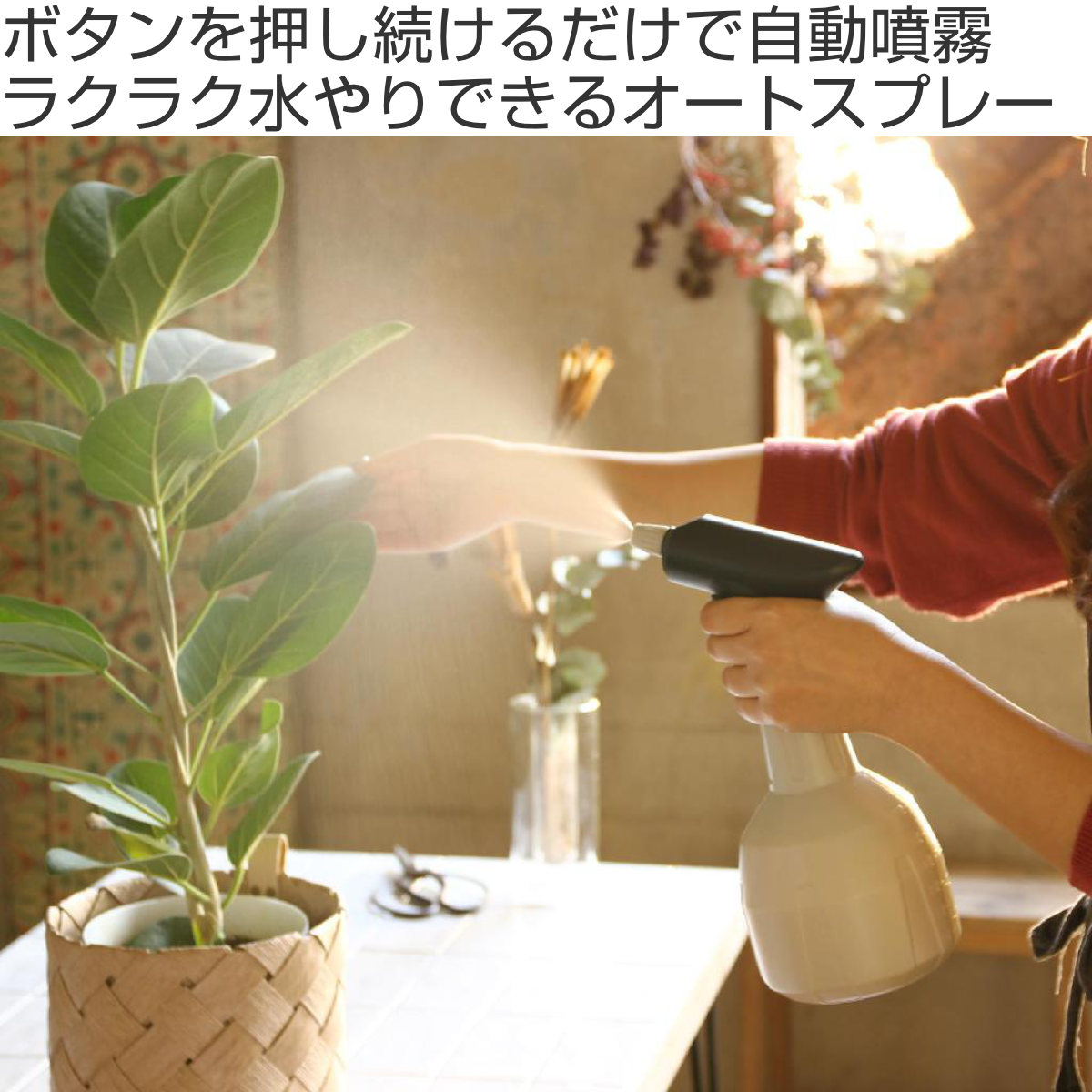 霧吹き 電池式オートスプレー 1L ( スプレーボトル スプレー 電池式 電動スプレー 自動噴霧 水やり 園芸 ガーデニング ミストボトル ジョウロ 観葉植物 葉水 庭 花 草 葉 テラス テラリウム おしゃれ プッシュ 掃除 ) 【オリーブ】
