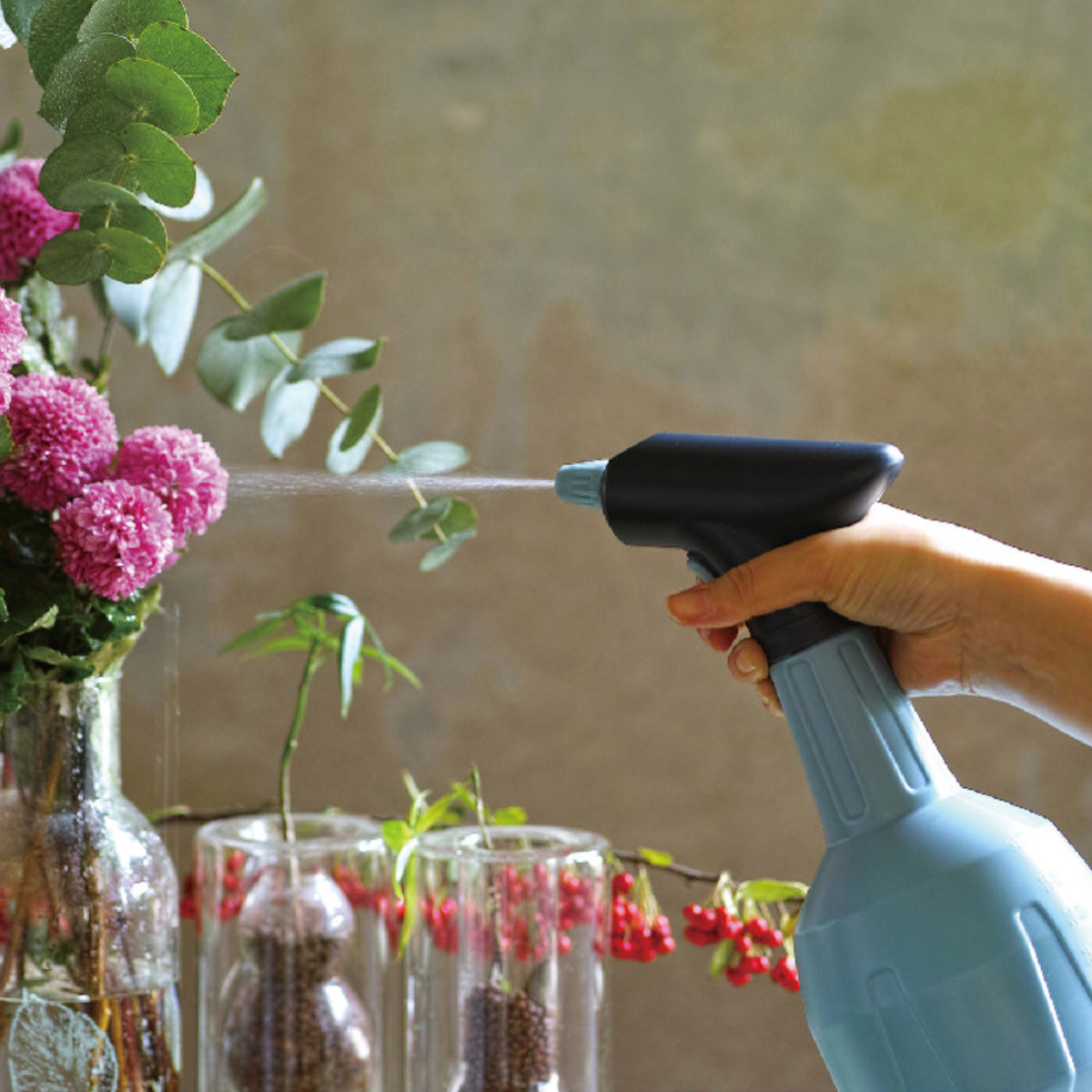 電源ボタンを押し続けるだけで、水やりしたいところに自動噴霧し続けるオートスプレーです。手が疲れず楽に水やりができます。握力の弱いご年配の方や、お子様でも扱いやすく大変便利です。毎日の水やり時間が楽しく快適です。
