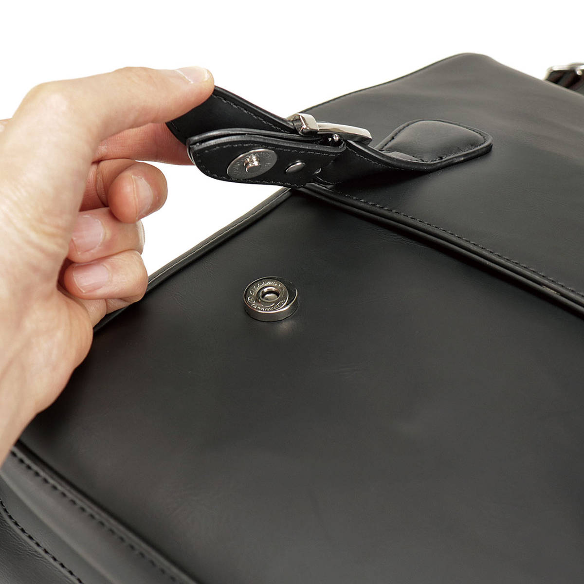 メインルームには、大事なノートパソコン・タブレットを優しく保護しながら運べるPCホルダーを装備しています。通勤・通学時の持ち運びに安心です。また、A4ファイルや封筒などが縦に収まるサイズ感で、ファスナーが付いているため荷物が飛び出す心配がありません。