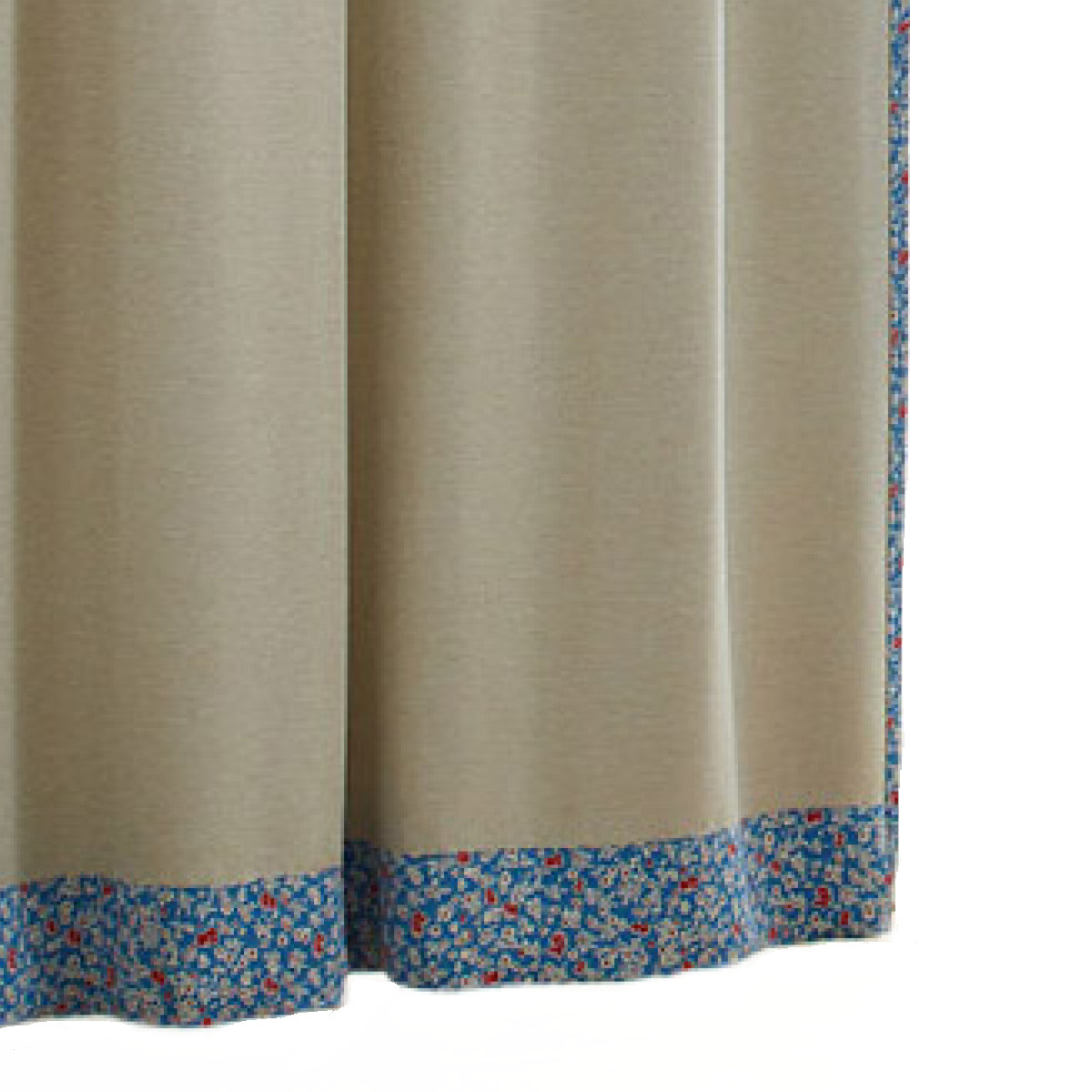 裏面の柄をチラ見せする縫製のバックプリントカーテンです。室内からはシンプルな無地のデザインが主に見えますが、外からは裏面にあしらわれたレトロな雰囲気の小さなお花が見えます。