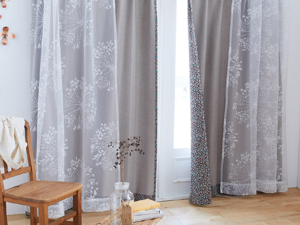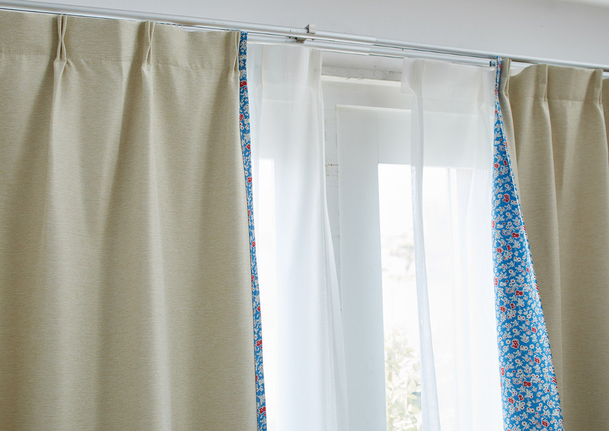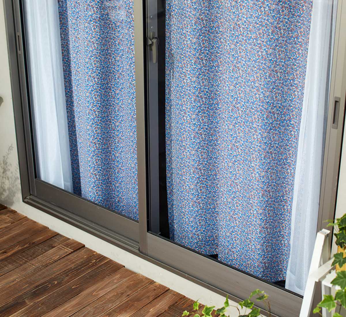 市販のレースカーテンと合わせやすく、落ち着いた空間の中にチラリと見える花柄が程よいアクセントになります。
