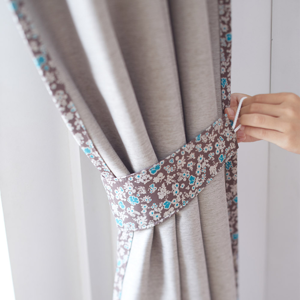 タッセル、カーテンの両サイドと裾の部分は裏面の柄が見えます。