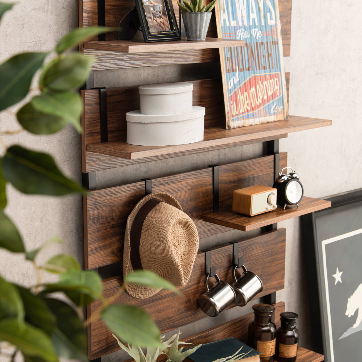 インテリア性が高く、おしゃれな木目調シート仕様。リビングや玄関などの飾り棚におすすめです。