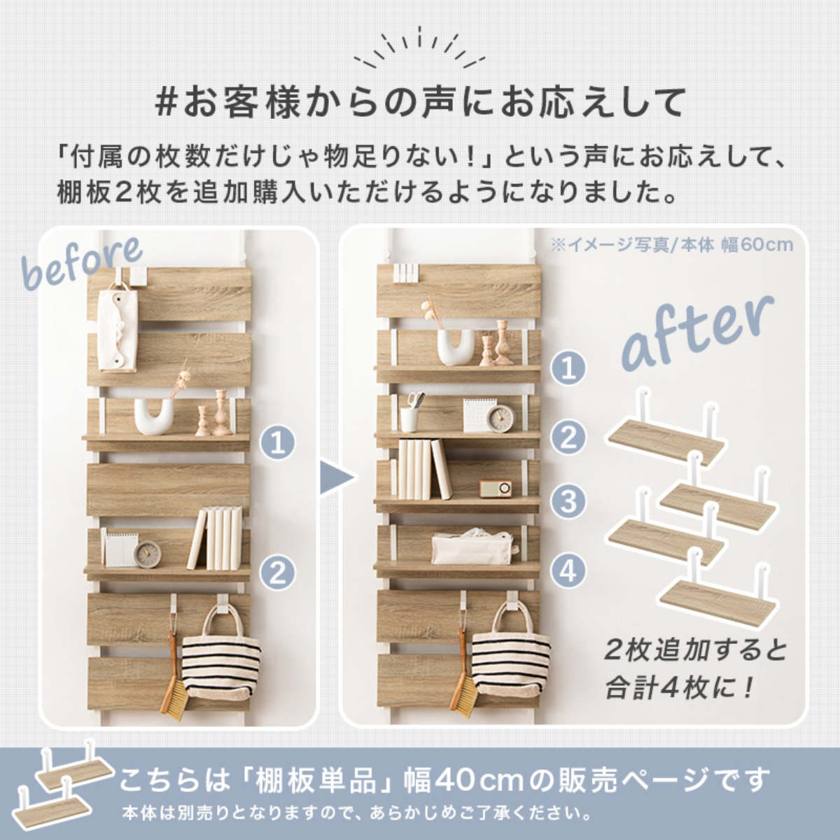 ウォールラック専用追加棚板 幅40cm 2枚 ( 棚板 2枚セット 追加用 本体別売り 専用棚 突っ張り ウォールラック ラダーラック 棚 壁面 収納 木目調 パーツ 増設 スリム ラック 壁面収納 追加棚板 幅 40 ) 【マーブルホワイト】