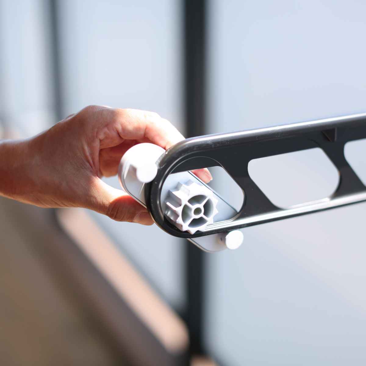 物干し金物に取り付けることで高さを上げたり伸ばしたりできる、ポールアップです。裾が付いてしまう丈の長い洗濯物も、物干し金物が低くても「ポールアップ」を使えば床に洗濯物が触れず、裾が汚れません。※床から最大30cmアップできます。