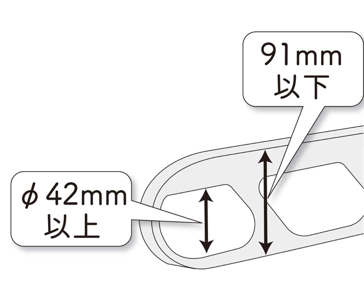 直径42mm以上の穴があり、上下幅が約91mm未満の物干し金物に取り付けることができます。