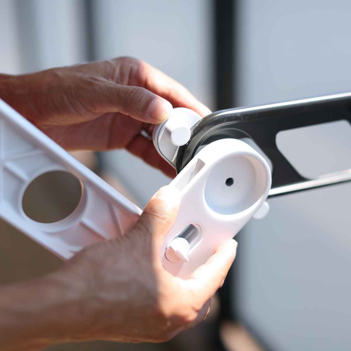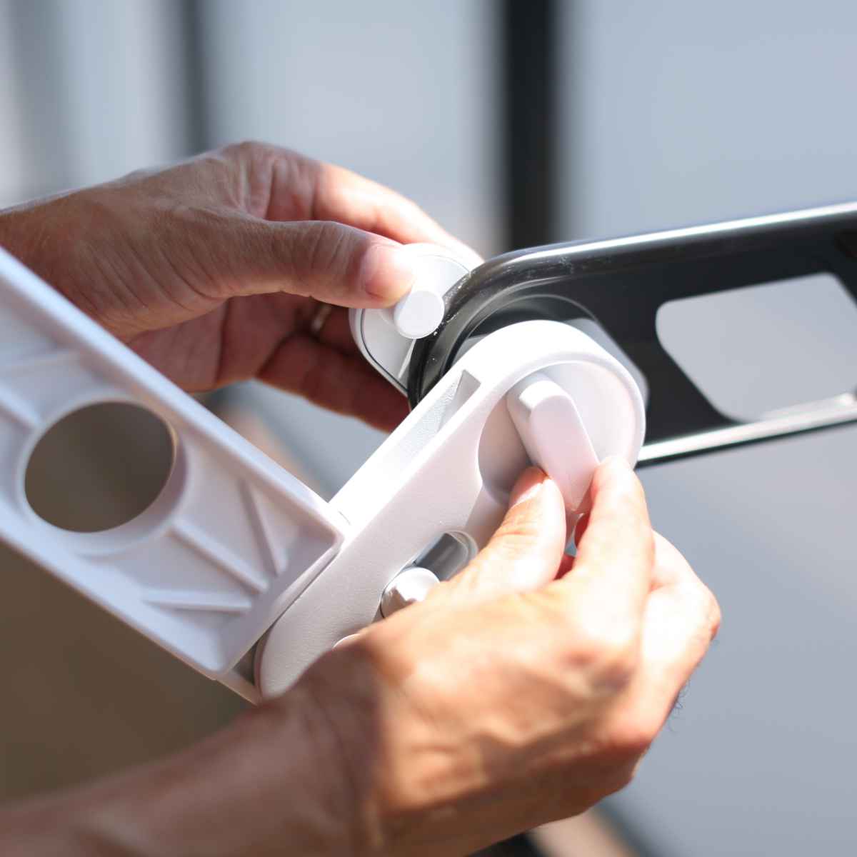 ●取り付けた後は、3つの角度変更が簡単に行え、更に角度調節ギアで12段階の角度調節も可能です。