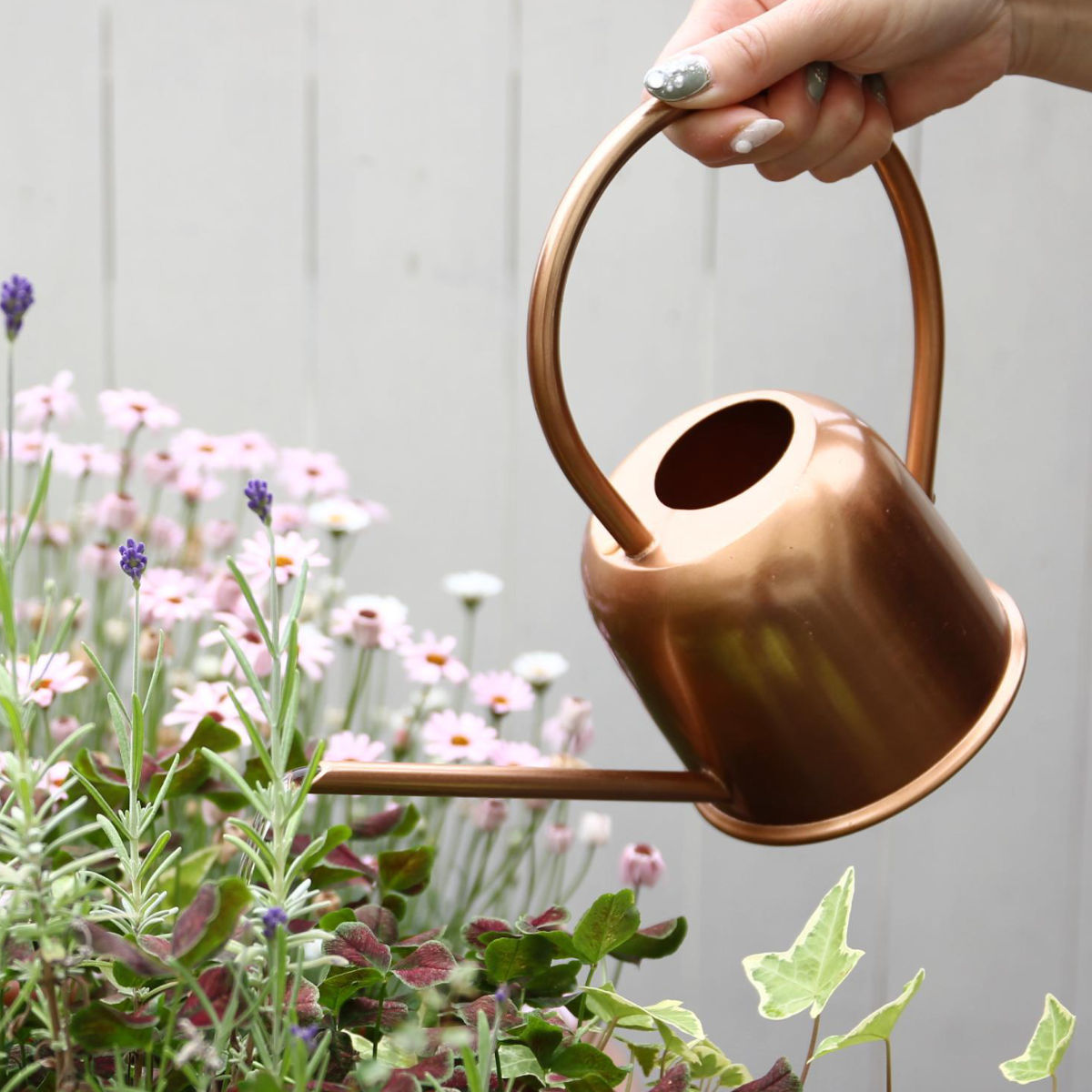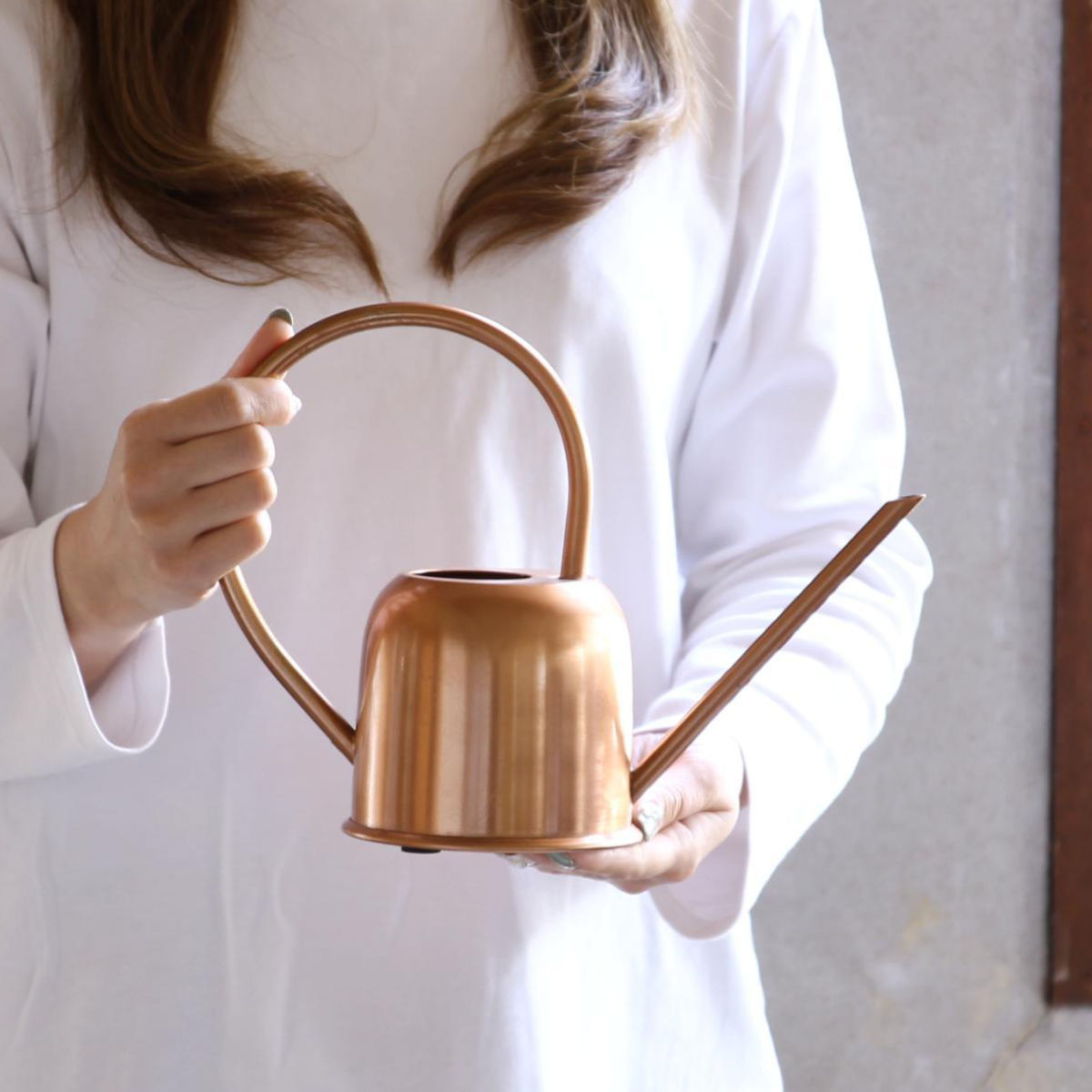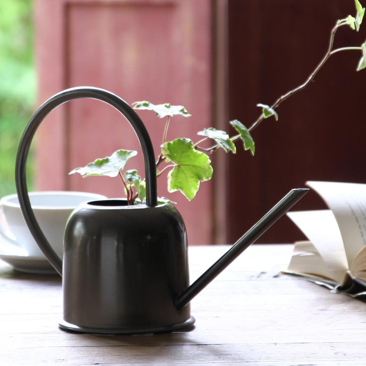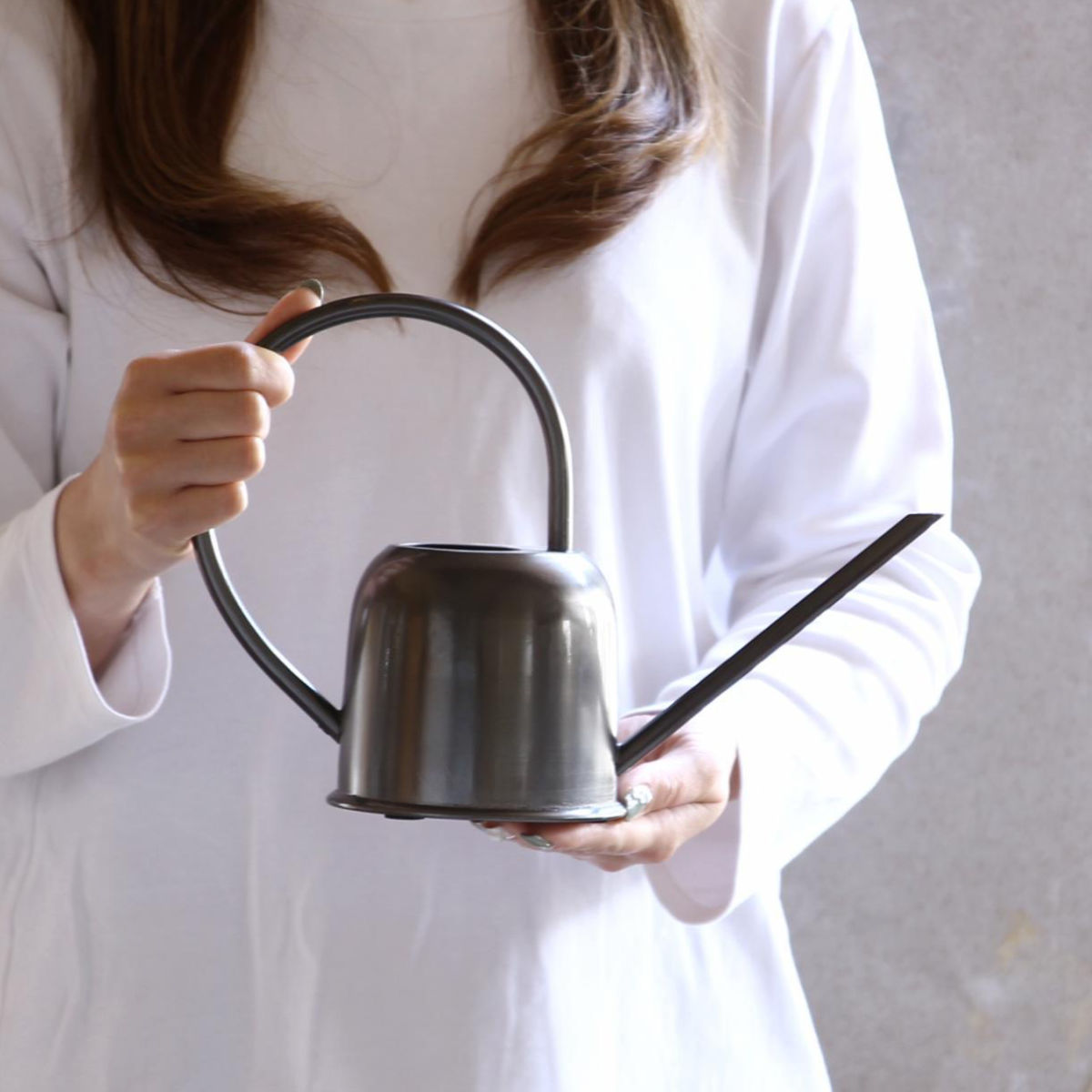人の目を惹き付ける洗練されたデザインに質感と色味が特徴的なジョーロです。隠さずに敢えて飾って置ける、インテリアに馴染みやすいデザインです。