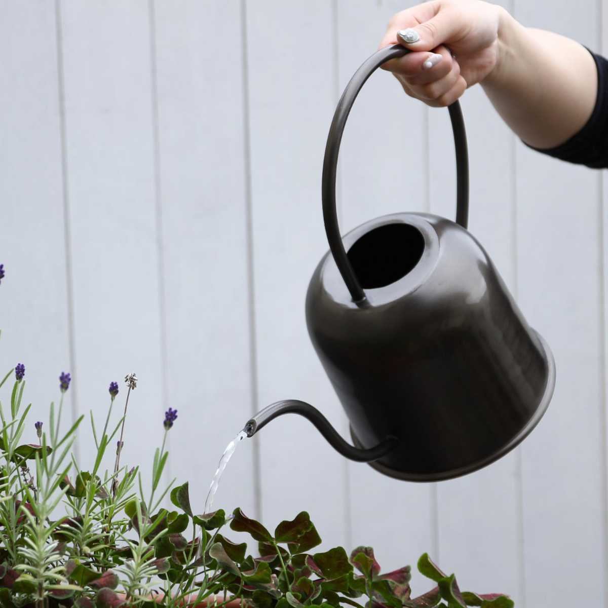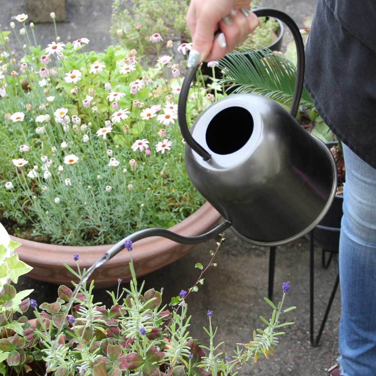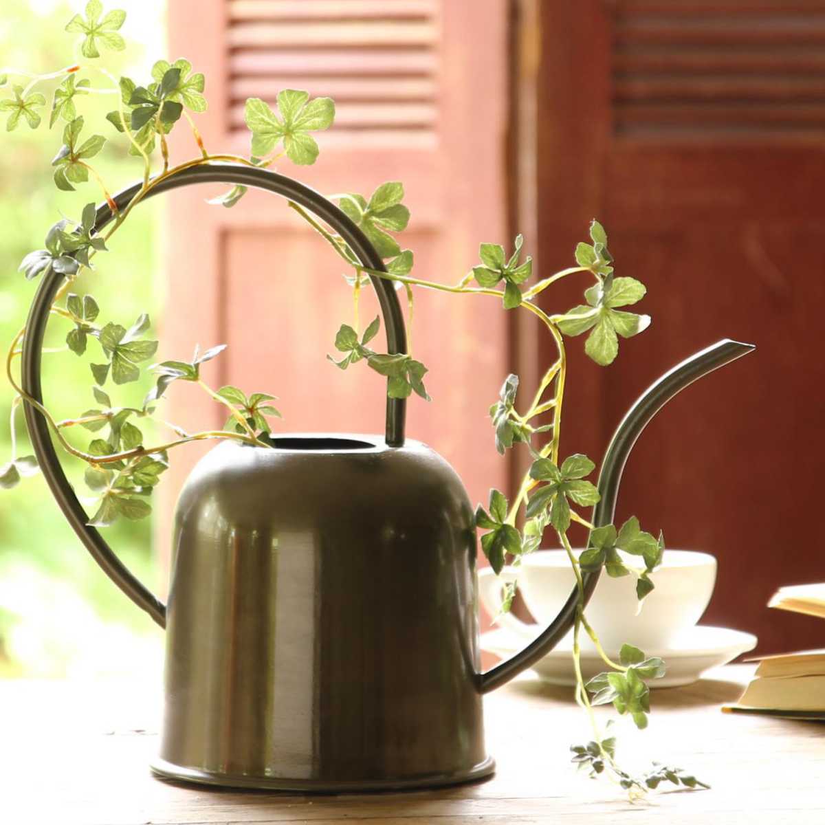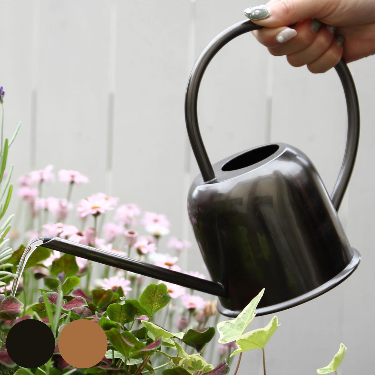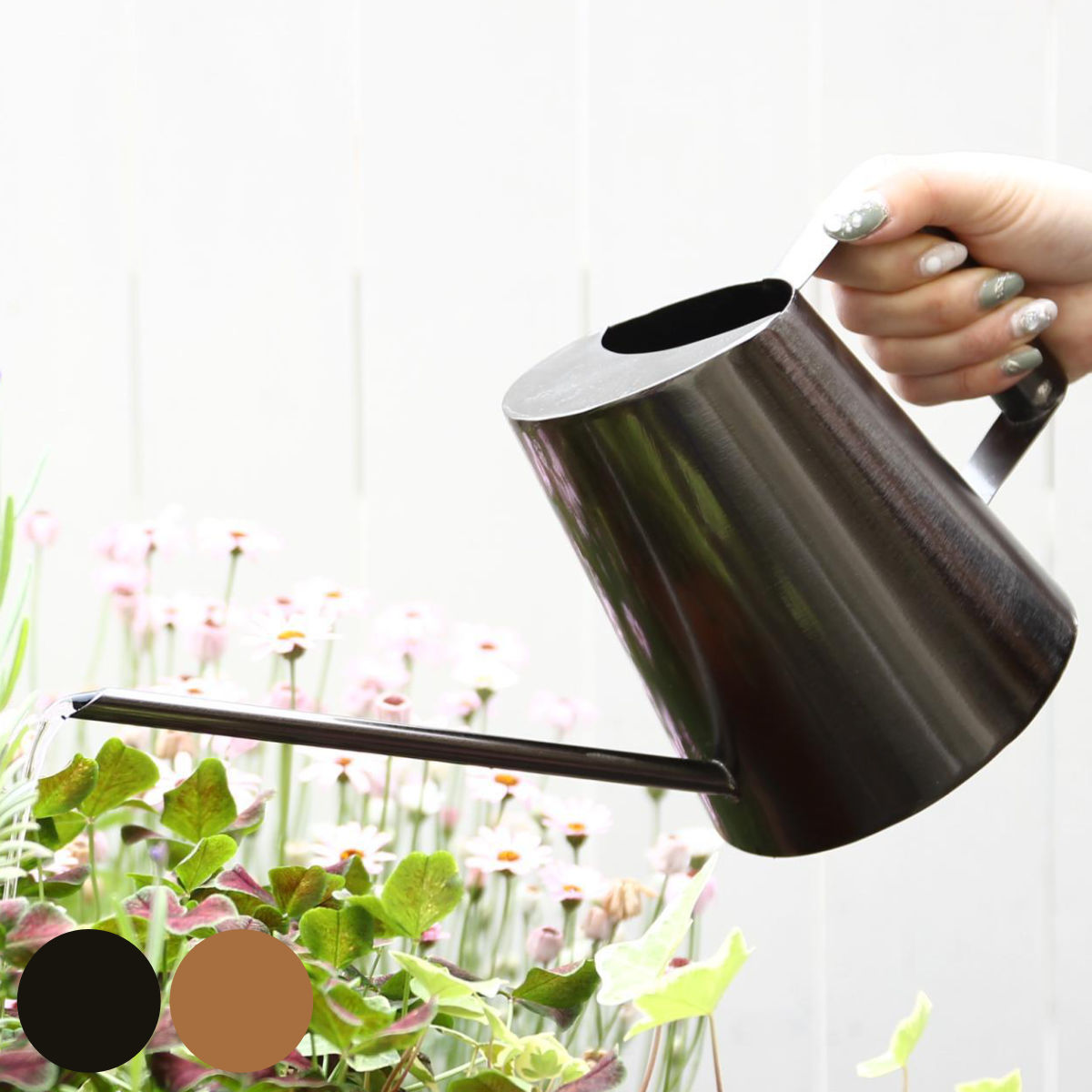 人の目を惹き付ける洗練されたデザインに質感と色味が特徴的なジョーロです。隠さずに敢えて飾って置ける、インテリアに馴染みやすいデザインです。