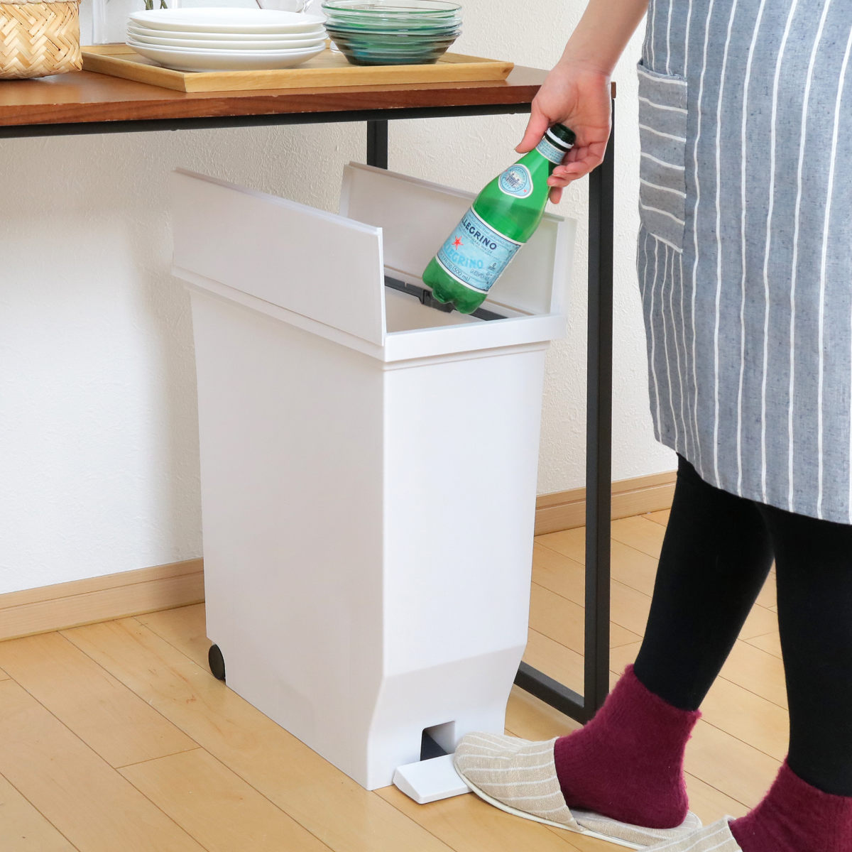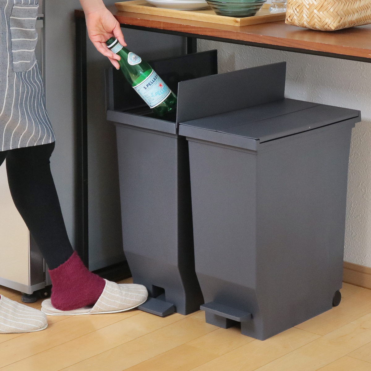 ふたの高さが抑えられる両開きは、カウンターやカップボードなど棚下にぴったり。ふたを開いてもぶつからず、全開にできるのでゴミを捨てやすいです。
