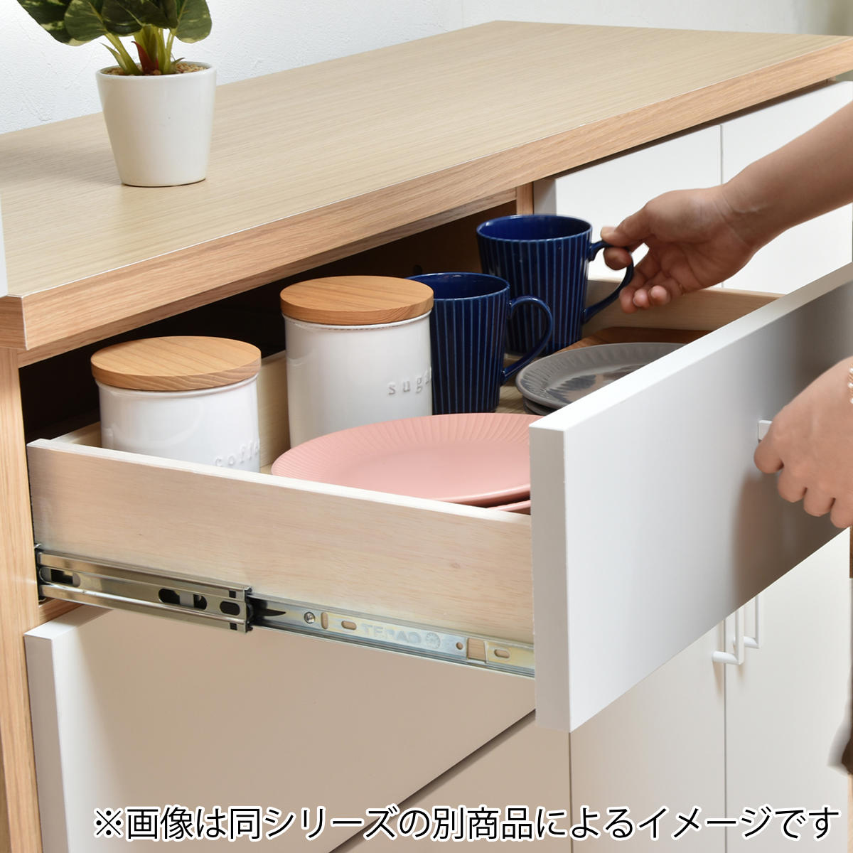 | 材質 | 【本体・天板・棚板】オレフィン化粧繊維、中質繊維板、パーティクルボード 【引出し】ファルカタ、プリント化粧繊維板 |